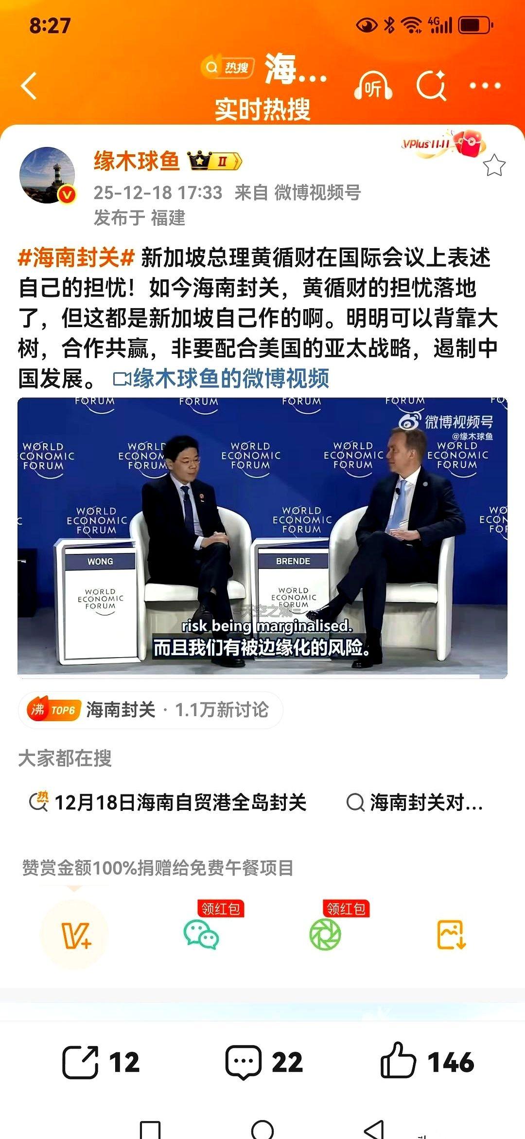 看到新加坡那位新上任的哥们儿,在会上那张写满“完了”的脸,我就知道,该来的还是来了。 咱们的王炸——海南,终于要摊牌了。 你说这事儿怪谁呢?真的,有时候我都替他们觉得可惜。 明明一棵参天大树就在旁边,你靠过来,一起乘凉,一起结果子,闷声发大财,多好? 非不。 非要觉得自己段位高,能左右逢源,在两个巨人中间跳舞,玩什么平衡术。 一边吃着我们这边发展的巨大红利,赚得盆满钵满; 一边又心照不宣地,跟着老美那边搞些小动作,递个“投名状”,时不时想给我们使个绊子。 真把我们当傻子了? 以为我们离了你那个“十字路口”的港口,船就不知道往哪儿开了? 我们不跟你吵,也不跟你闹。 我们只是安安静静地,在自己家的院子里,挖一个更大、更深、更气派的游泳池。 你自己看看地图,海南那个位置,那个体量,那个政策……一旦彻底搞起来,那根本不是什么挑战,那是降维打击。 所以说啊,这个世界最朴素的道理就是,别总想着去堵别人的路。 因为人家很可能,直接给你开出一条全新的河。 选择,真的比努力重要太多了。这话真不是鸡汤。
