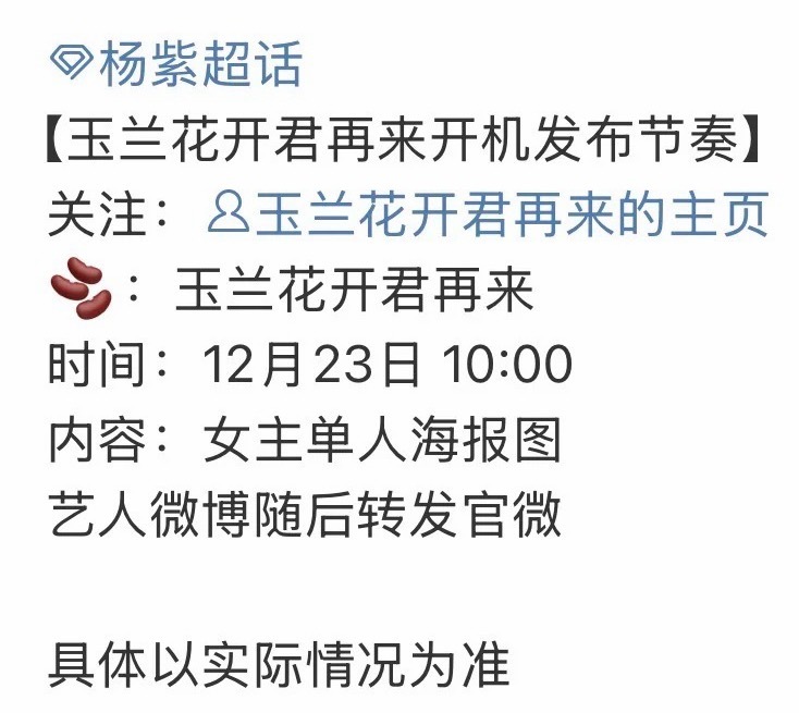 杨紫玉兰花开君再来明天开机仪式