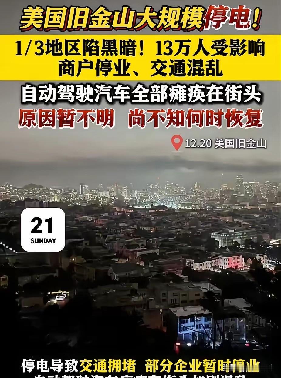 南京卫星信号异常.旧金山突发全面停电.谁在暗中操控城市命脉? 继去年南京发生自动驾驶集体失灵事件后,上月美国旧金山突然断电十三小时,导致全市自动驾驶车辆全部停摆。受影响商户被迫关门,大量市民被困商场,救护车只能靠人工指挥通行。调查显示那次停电与电网设备老化无关,反而发现电磁波频段存在异常干扰。 中国南京半年前遭遇类似情况,北斗和GPS信号同时中断,上千辆无人车堵在主干道。两国专家称两起事故存在技术关联特征,但具体原因至今未公布。目前两地政府联合成立调查组,正排查是否存在人为破坏可能。