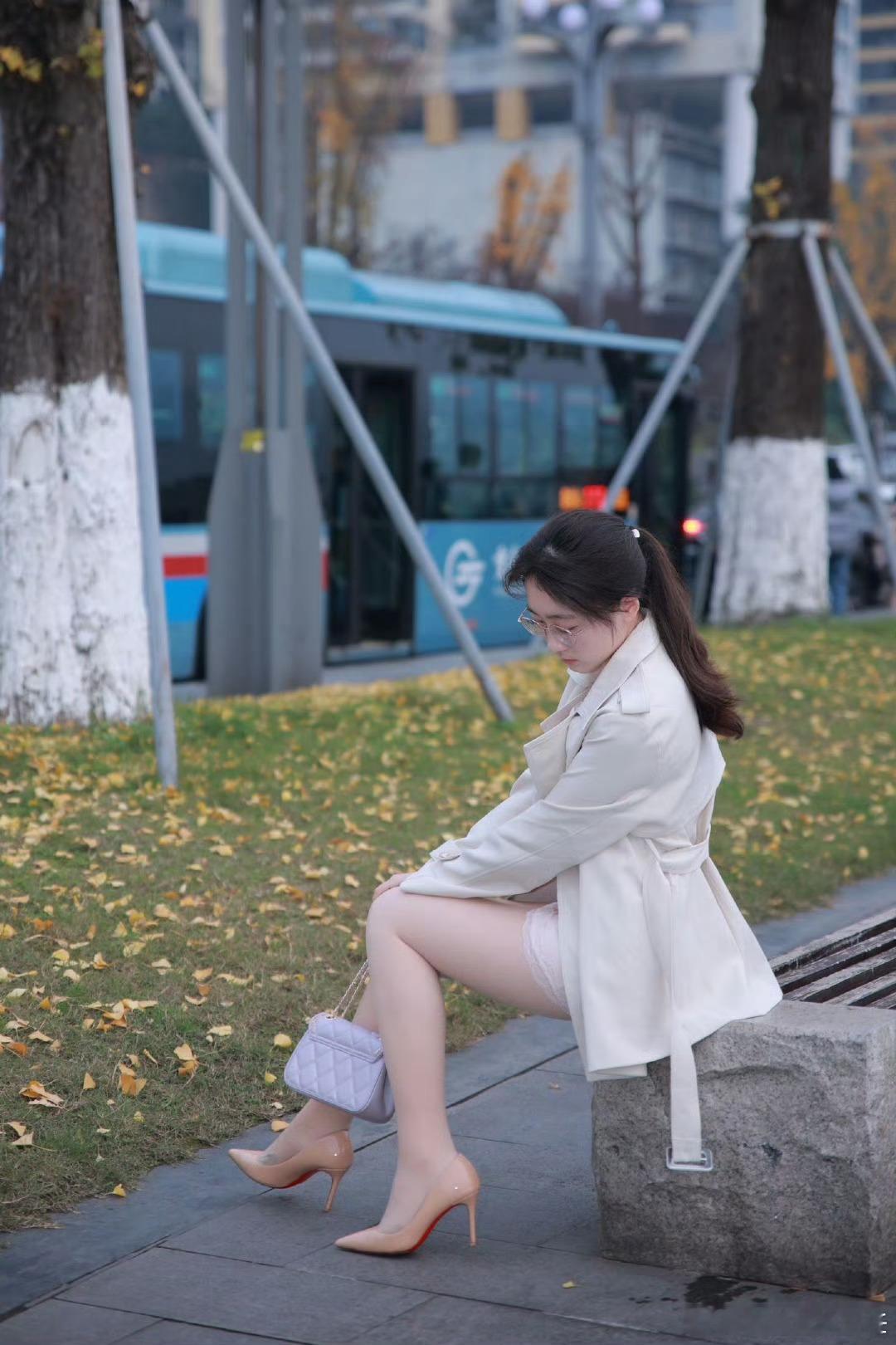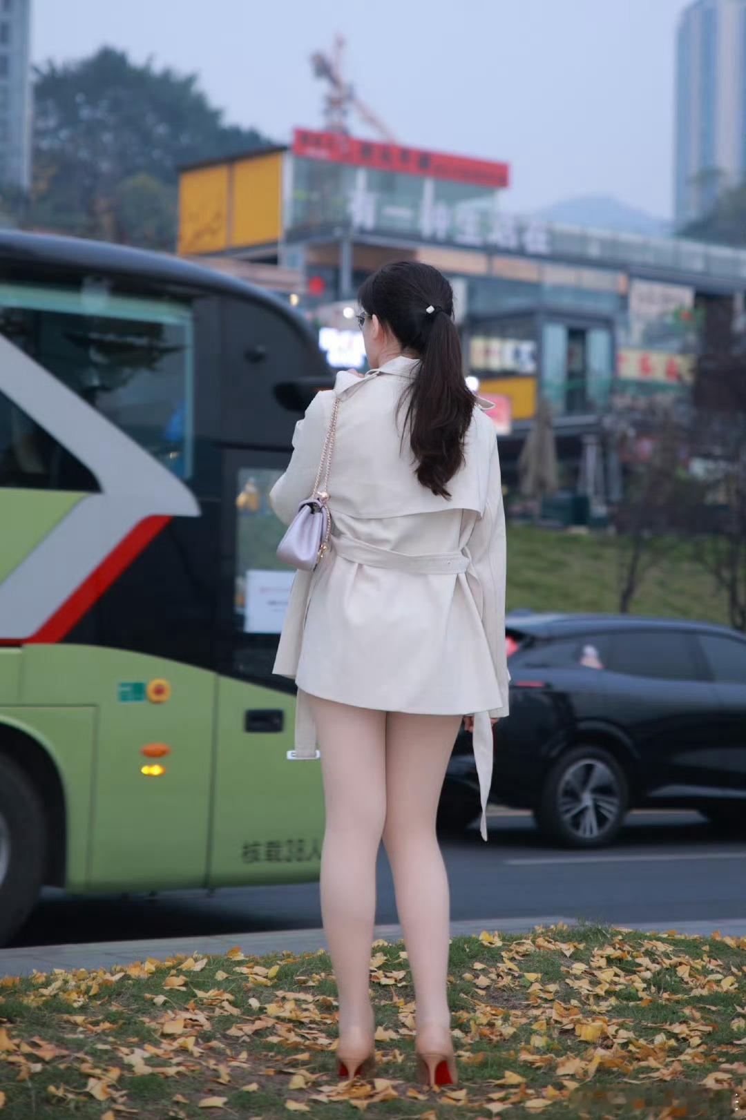 夜晚街头的少女,黑发白衣,静谧而美丽。街拍高清美女