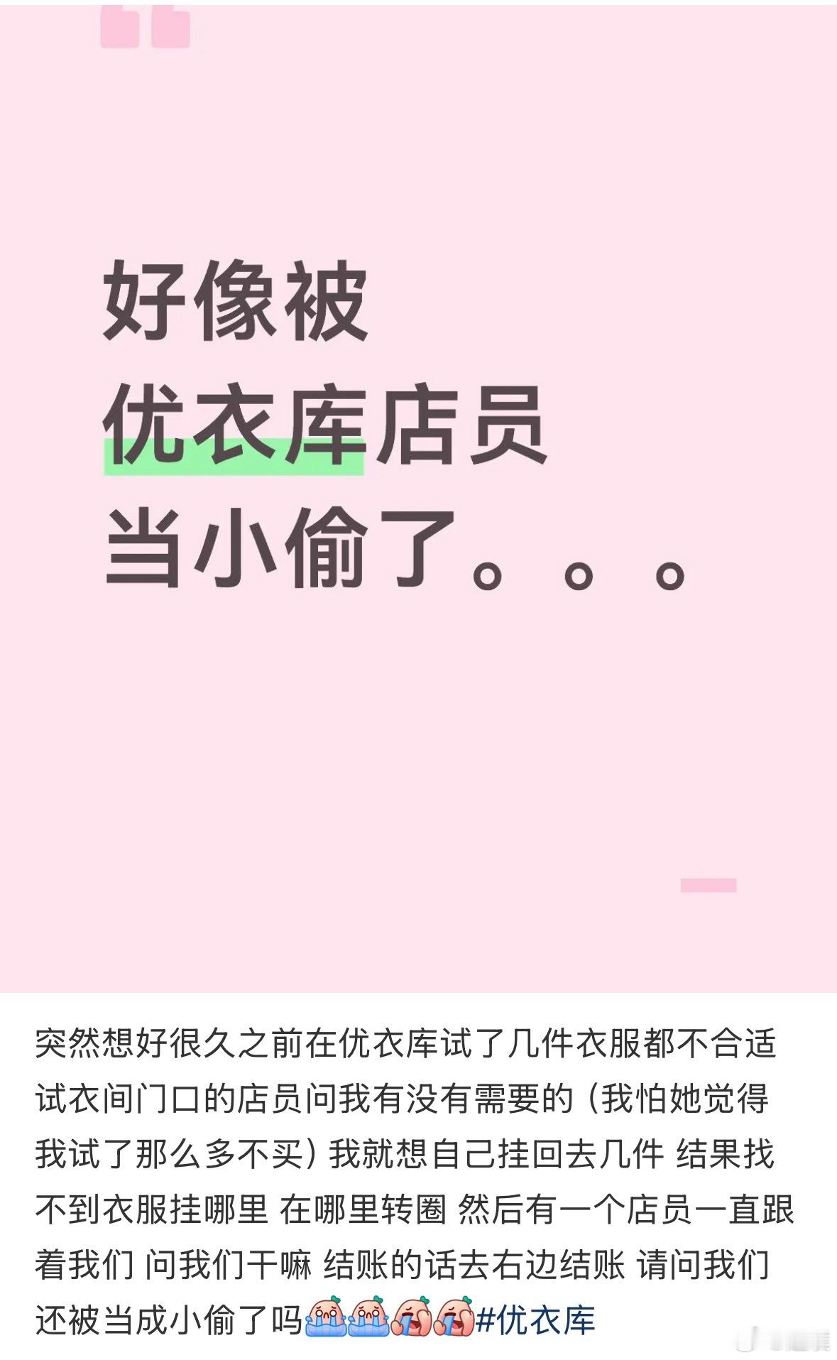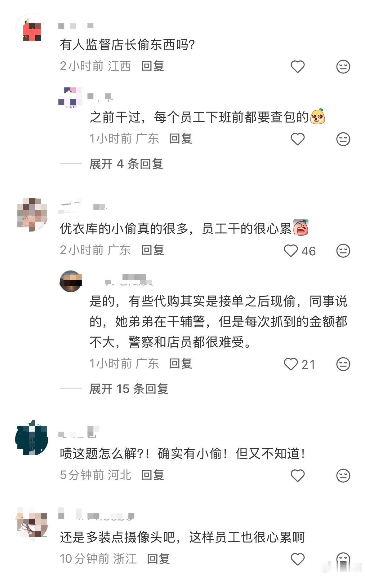 优衣库店长下达偷拍顾客指标刷到过有人发现一些代购优衣库的店铺,是去店里偷的虽然想防盗的初心能理解,但是偷拍确实不合适,侵犯了消费者的个人隐私。