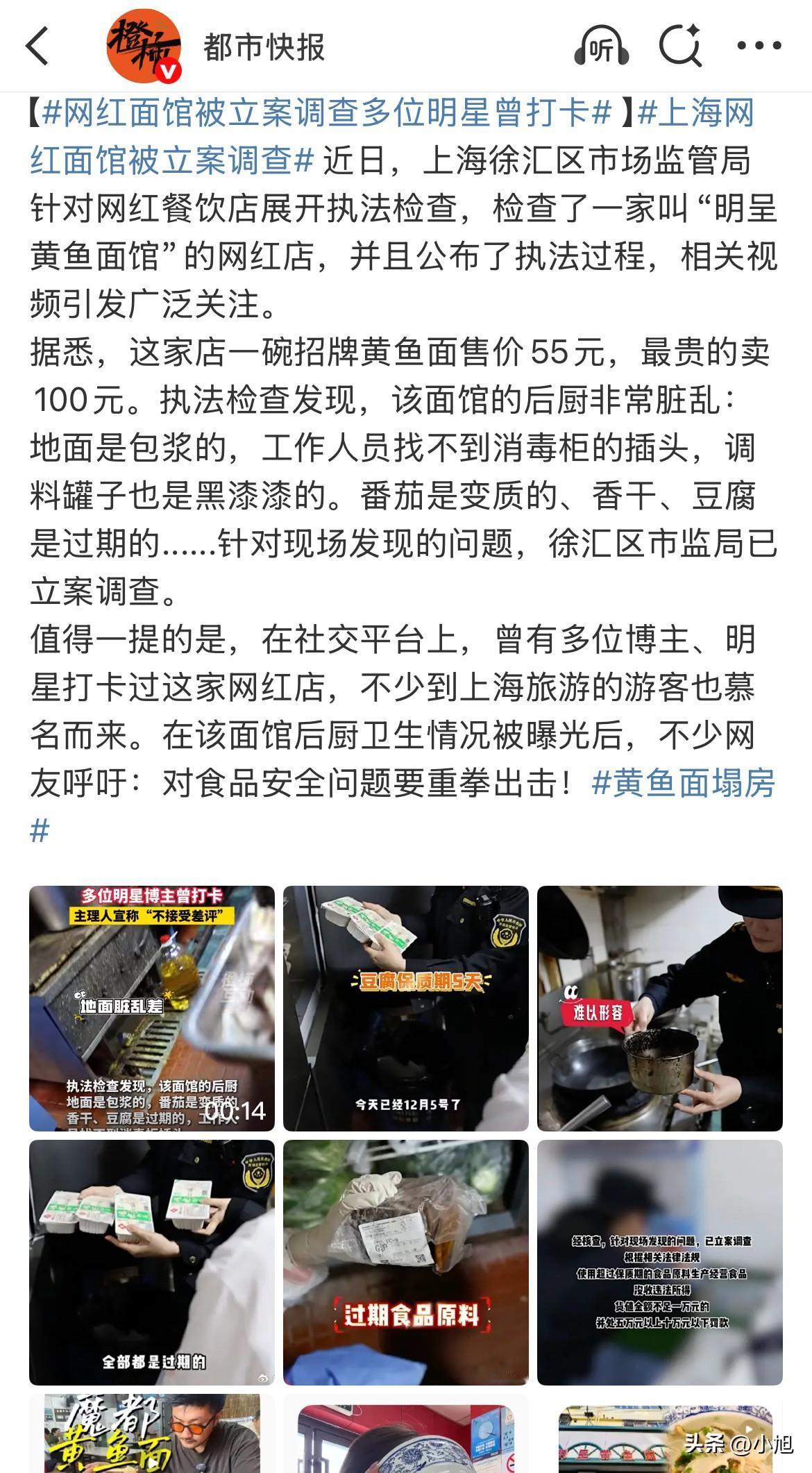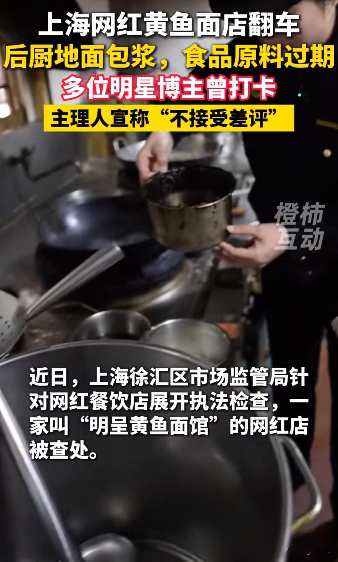 后厨脏到没眼看,过期的豆腐、发霉的番茄,这就是上海一碗卖100块的网红黄鱼面! 刚看到后续,这家叫“明呈黄鱼面馆”的店,已经被正式立案调查了。最新消息是,市场监管部门除了曝光后厨,还查了它用过期食品原料的问题,正在走处罚程序。有法律人士说,用过期原料,罚款可能五万起步,严重的还得停业。 想想真够讽刺的。之前多少博主、明星跑去打卡,照片拍得那叫一个光鲜,价格也定得高端。结果呢,后厨地面黏脚,调料罐包了浆,消毒柜就是个摆设。合着消费者花大价钱,就买了个“网红滤镜”呗?滤镜背后,全是卫生隐患。 这店门口以前还贴着“不接受任何差评”的霸气标语。现在看,不是不接受差评,是怕差评戳破那个吹起来的泡沫。早就该管管了。 这件事给所有食客提了个醒:别盲目相信“网红”两个字。排队的人多、照片好看,跟东西好不好、干不干净,完全是两码事。吃饭,安全、卫生才是最基本的,这点没得商量。 也希望这次立案能真正罚到痛处。让那些只顾赚钱、不顾食品安全的人知道,厨房的“里子”比门面的“面子”重要一万倍。 目前已整改完毕。