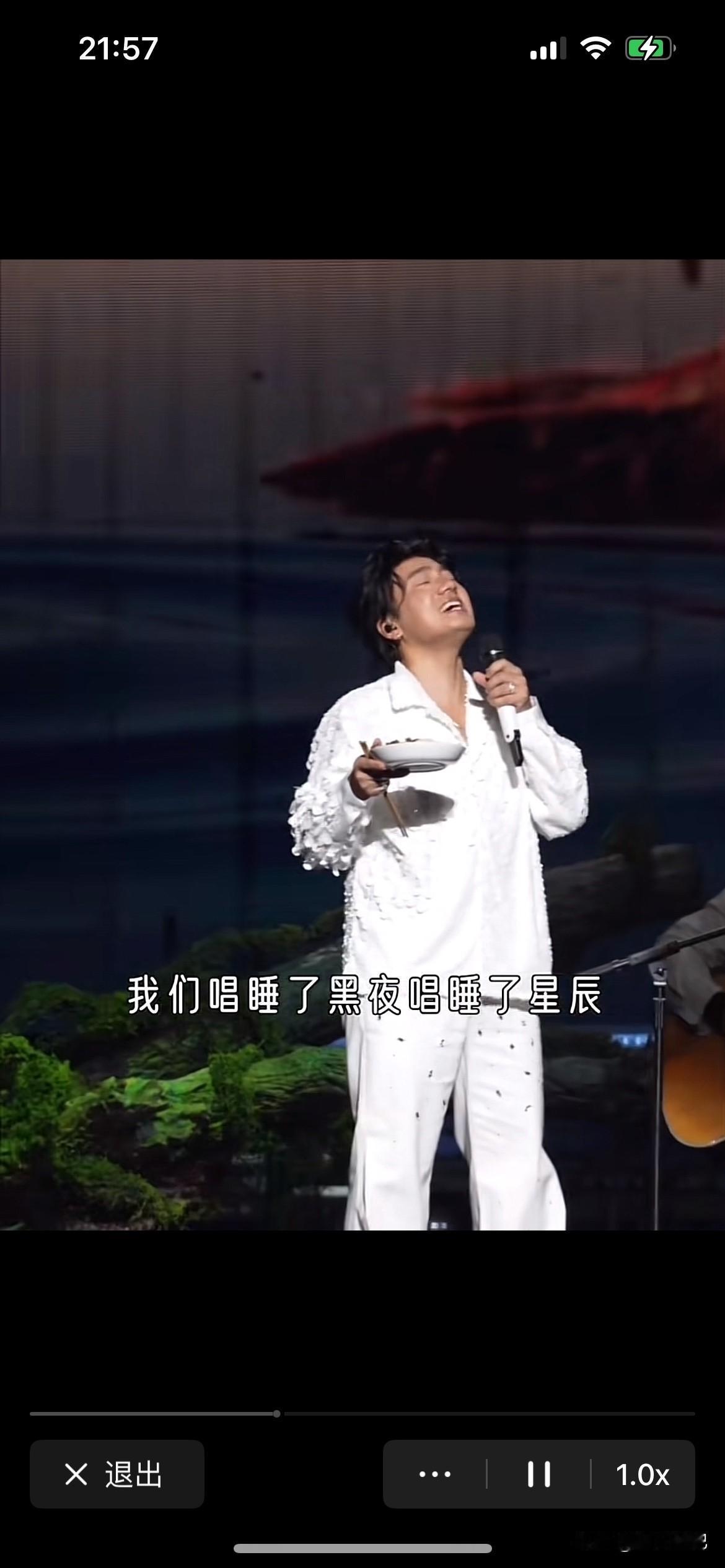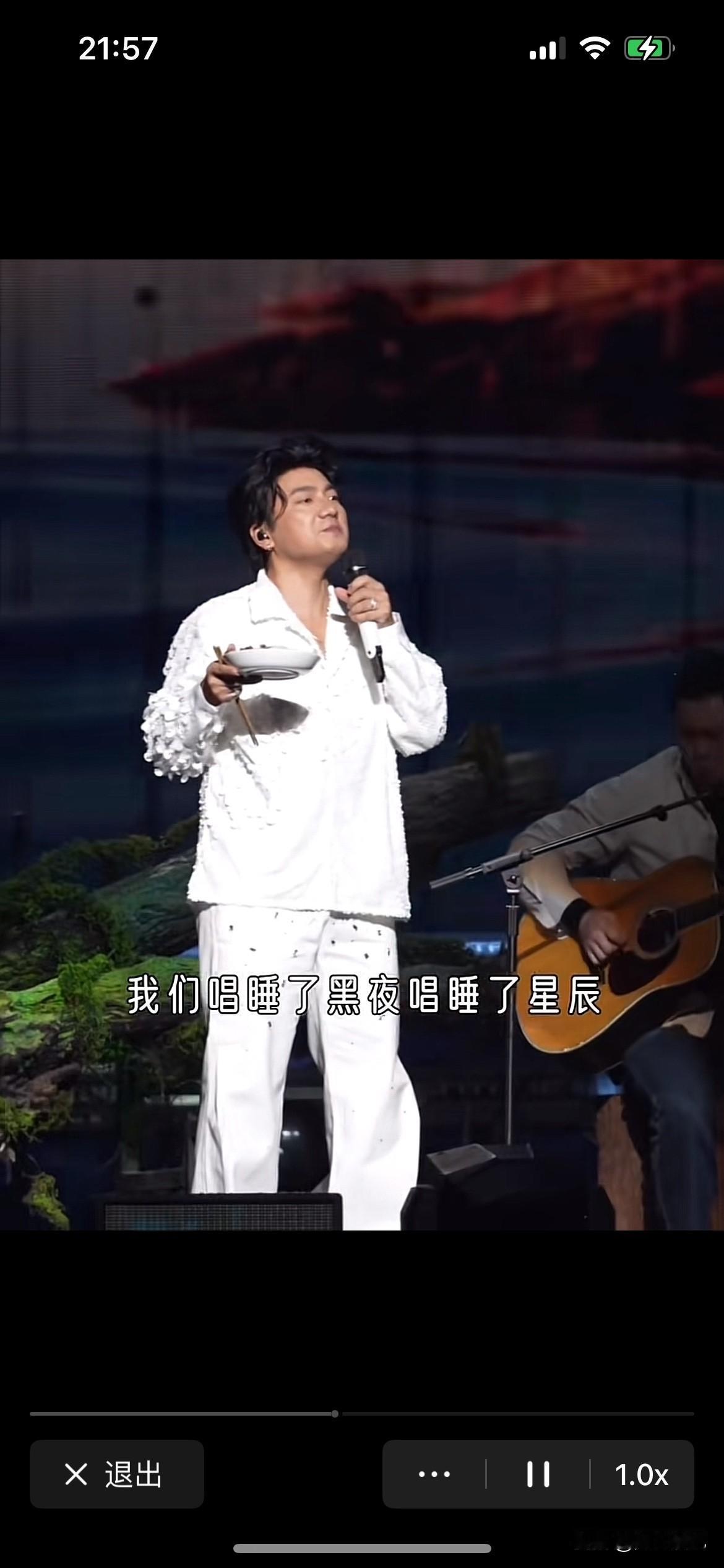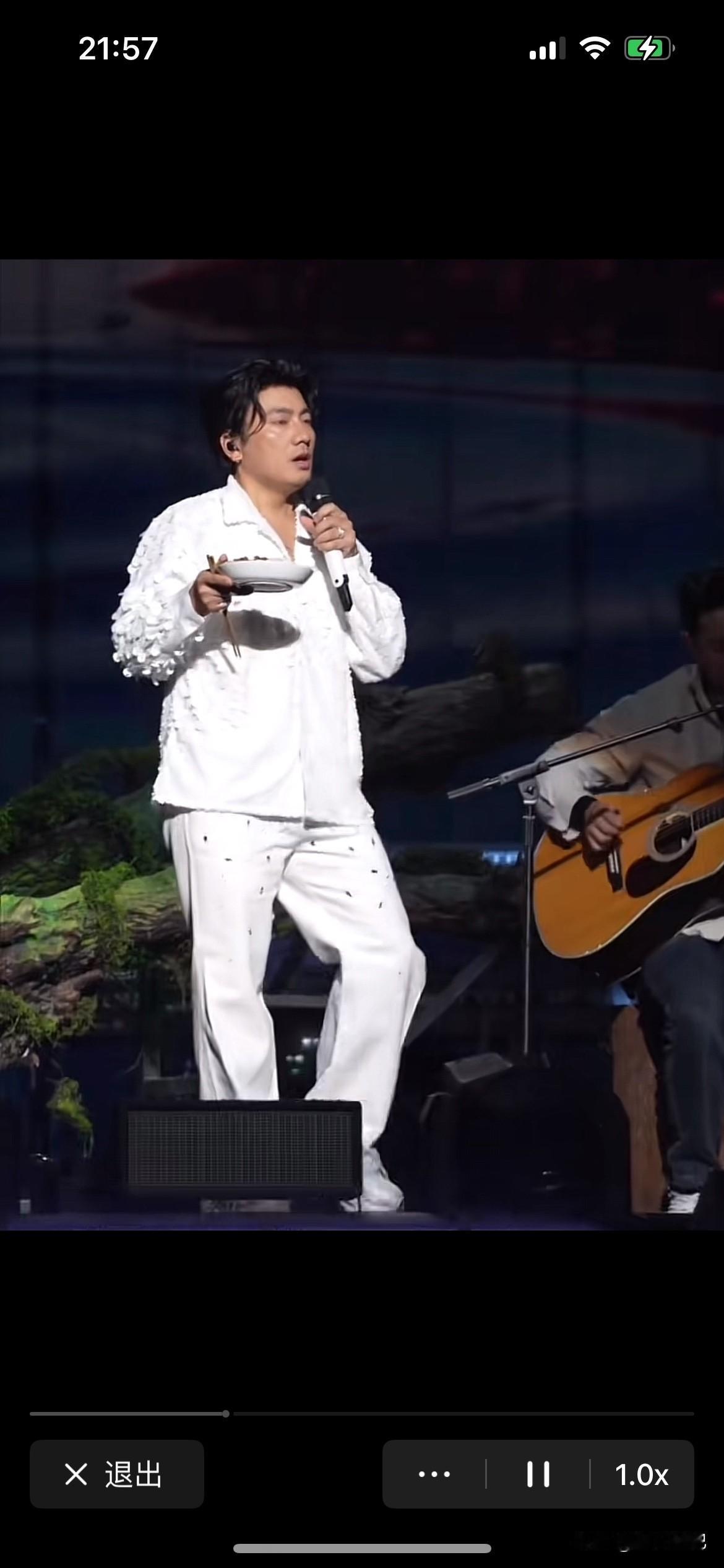 只有海来阿木老师敢在自己的演唱会上做出格的事情,一边唱歌一边端碗吃饭,有实力的人就是不一样,敢唱敢做,而且一点也不尴尬。 海来阿木歌唱的好听,嗓音干净、吐字清楚,听他唱歌感觉身轻松,一点也不觉得累,有些歌手唱的歌听着觉得很累,那不是在唱歌是在喊,使劲的喊、嚎叫,海来阿木加油。