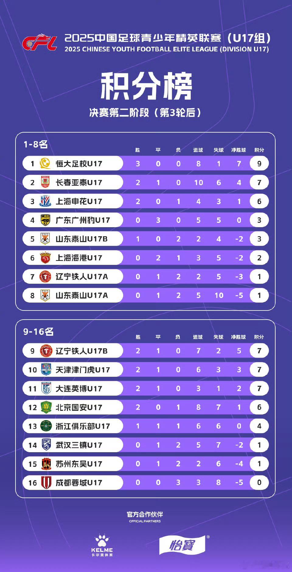 📍津门虎U17战报2025中国青少年精英赛U17组9~16排位赛第3轮:天津津
