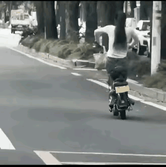美女骑个电瓶车扭来扭去 这是坐椅上有刺吗?[思考]