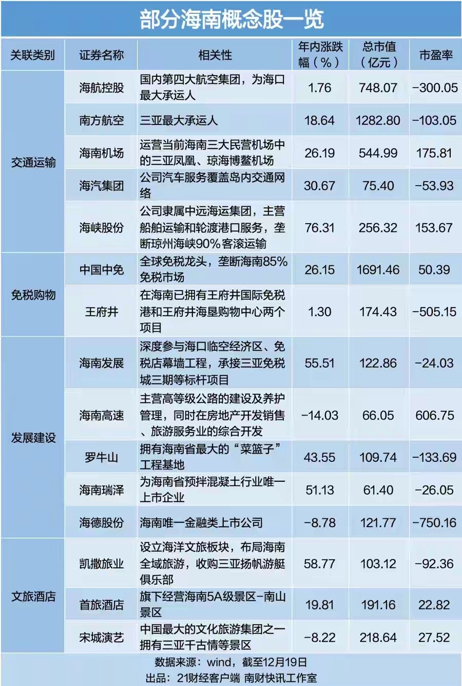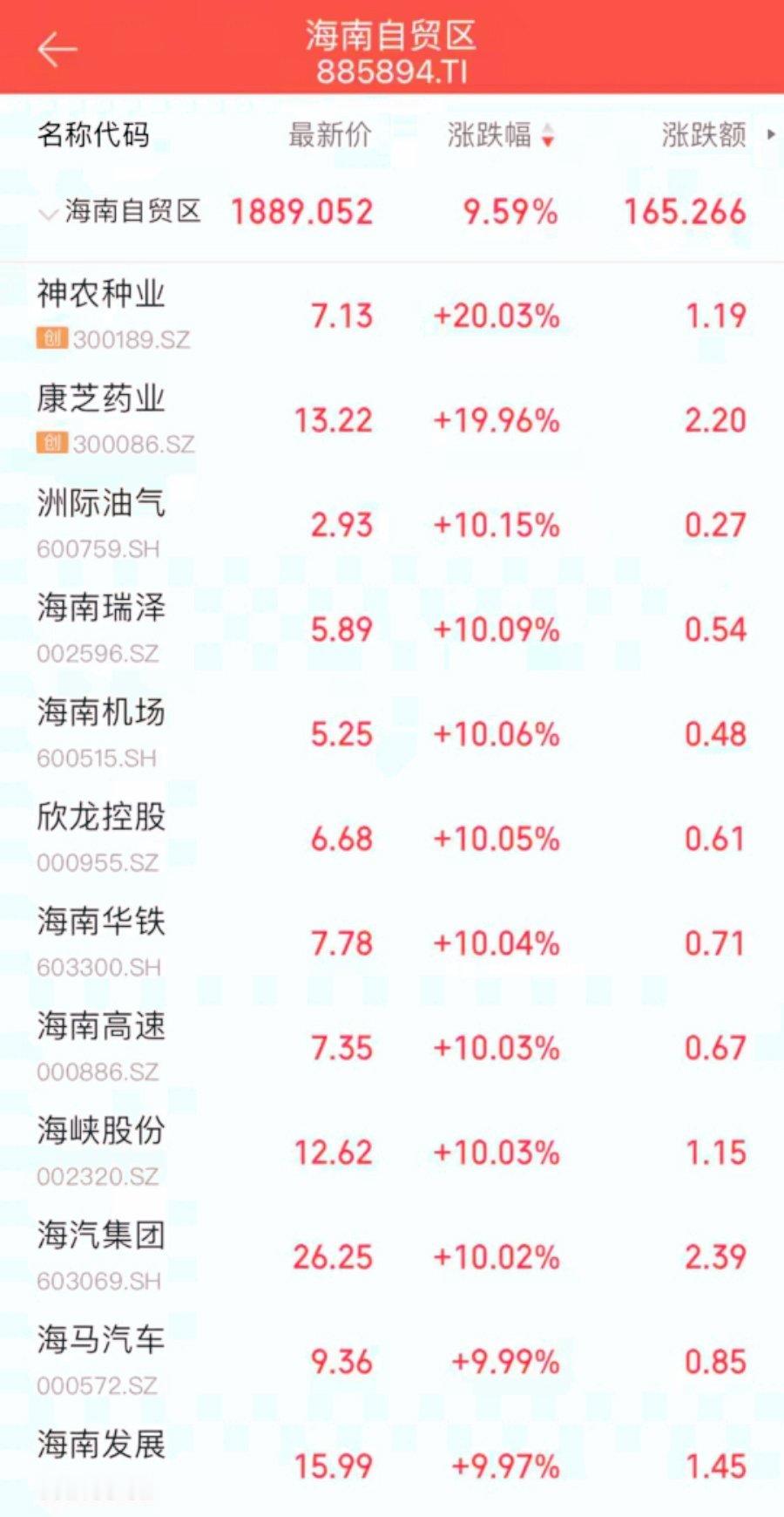 12月22日,A股市场“海南板块”再度成为最亮眼的风景线。截至午盘,神农种业与康芝药业均20CM涨停,海南瑞泽、海南机场、海南高速、海南发展等23只个股相继封板,板块内掀起涨停潮。这一市场热潮的直接导火索,是海南封关运作带来的政策红利持续释放。消息面上,“海南封关‘零关税’带来哪些红利”冲上百度热搜第三位,市场对自贸港政策落地的预期全面升温。封关运作标志着全球面积最大的自由贸易港进入全新发展阶段。其核心是实施“一线放开、二线管住、岛内自由”的海关监管制度。最直接的政策红利是“零关税”水平的跃升:商品税目从封关前的1900多个大幅扩增至约6600个,占全部商品税目的比例从21%提升至74%,基本覆盖了主要的生产设备和原材料。有分析预计,这将为相关企业降低约20%的进口税负成本。政策已迅速转化为企业账面上的实惠。以海南航空为例,据央视新闻报道,从2020年至今,海南航空通过利用“零关税”政策进口发动机、空气循环机等20批次航材,涉及货值约3.5亿元,节省关税及增值税超过5000万元。而据海口海关统计,封关首日“一线”进口“零关税”享惠货物3.6亿元,主要为原油、航空器材等,“二线”监管内销加工增值免关税货物1468.9万元,免征关税80.8万元,涉及医疗器械、药品、食品等品类。此外,政策红利在消费端得到了热烈的回应。据三亚市商务局统计,封关首日,三亚全市免税销售额达1.18亿元。其中,三亚国际免税城进店客流超3.6万人次,同比增长逾60%;销售额同比增长85%。消费端的热度进一步传导至旅游市场,随着元旦假期临近,内地前往海南的机票预订量超72万张,同比增长约10%,其中元旦前后飞往三亚的机票预订量同比激增51%,12月31日北京飞三亚的经济舱机票价格已突破2000元。入境游方面,数据显示,元旦假期前后,海口入境国际机票预订量增长40%以上。2026年春节期间,飞往海口的国际机票预订量同比增长1倍以上,入境游客主要来自俄罗斯、新加坡、澳大利亚、马来西亚等国。机构普遍看好海南封关后的长期发展机遇。开源证券指出,零关税政策预计可为相关企业降低约20%的进口税负成本,制度层面的降本增效将持续改善企业成本结构,同时放大海南旅游消费吸引力,有利于带动旅游消费及相关零售业态扩容升级。野村东方国际证券则认为,年末博弈政策预期的投资机遇或相对有限,但新业态培育、场景创新为区域消费流通企业带来的效果值得关注,短期节假日集中对出行需求的释放、海南全岛封关运作启动后对免税消费拉动效果有望延续,政策节奏与数据验证有望继续成为板块结构性机遇催化。