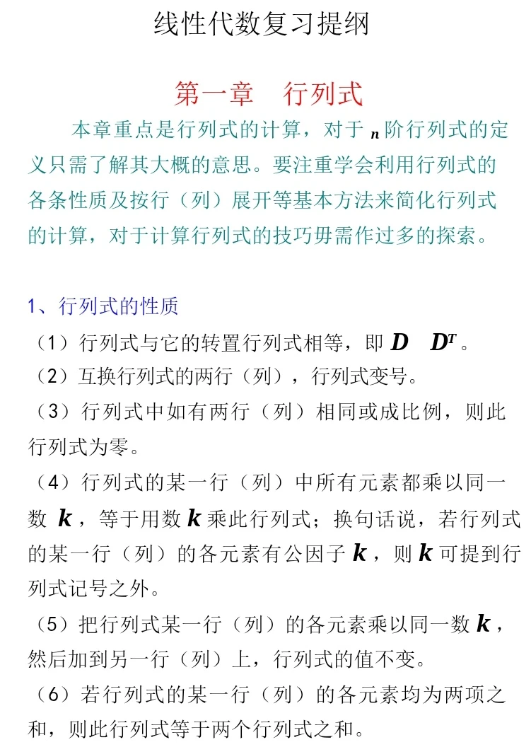 行列式的性质线性代数线性代数笔记线性代数辅导线性代数习题线性...