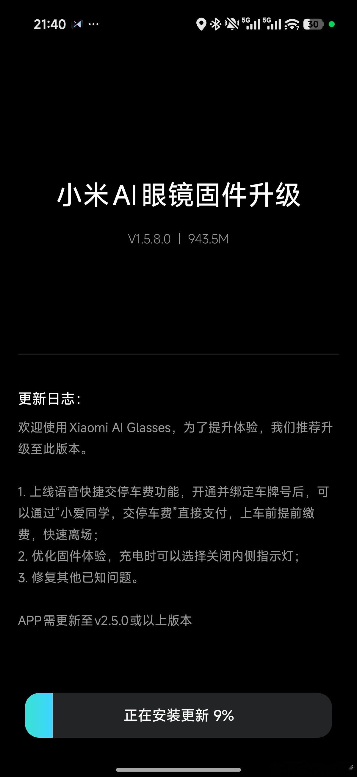 小米ai眼镜这次的ota有点意思啊,居然可以直接缴纳停车费,回头我来试试看。