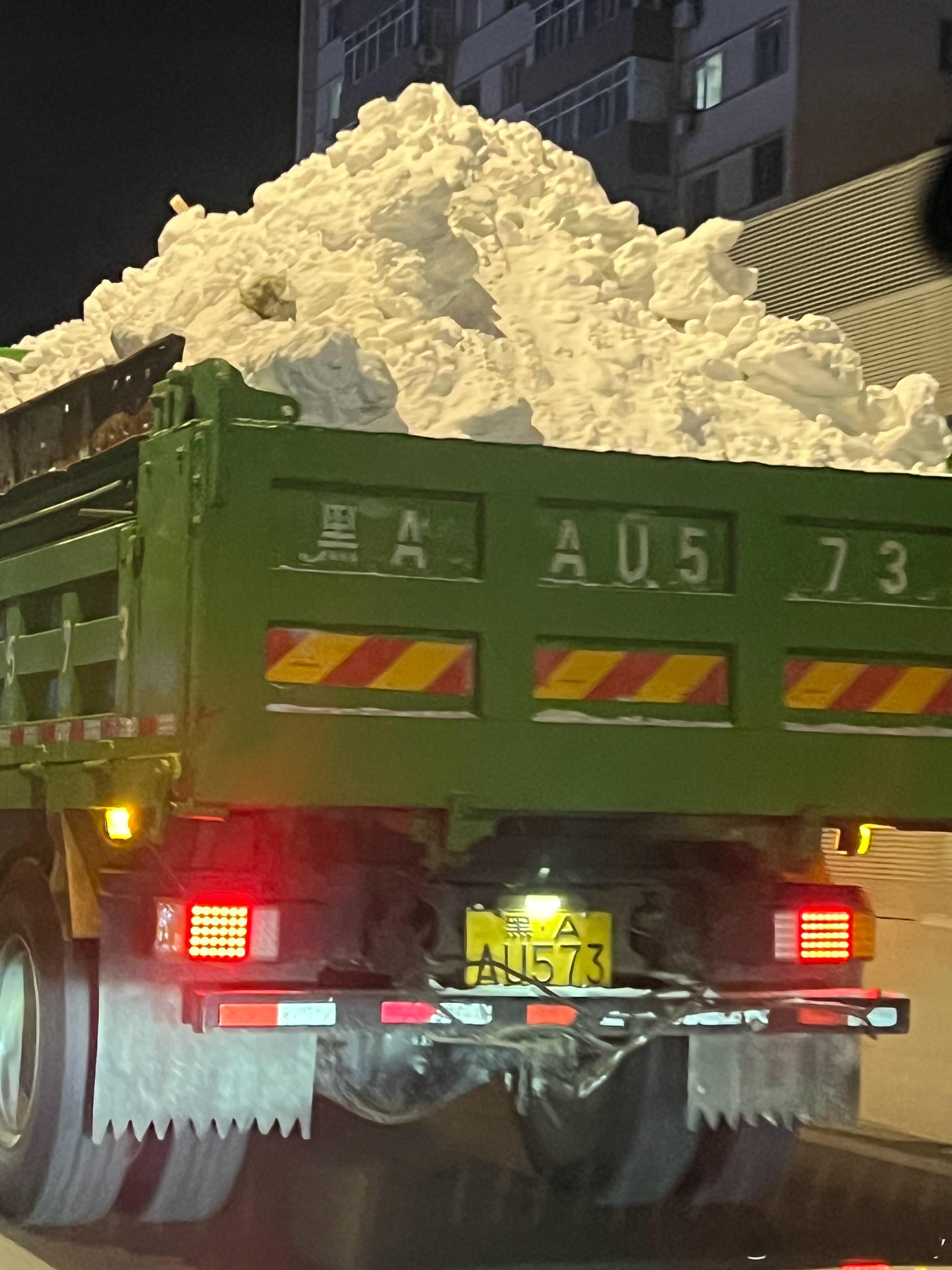 这拉的是雪吗🙉南方人看了会觉得,明明自己就会化成水,为什么要拉走处理🙉🙉🙉 哈尔滨