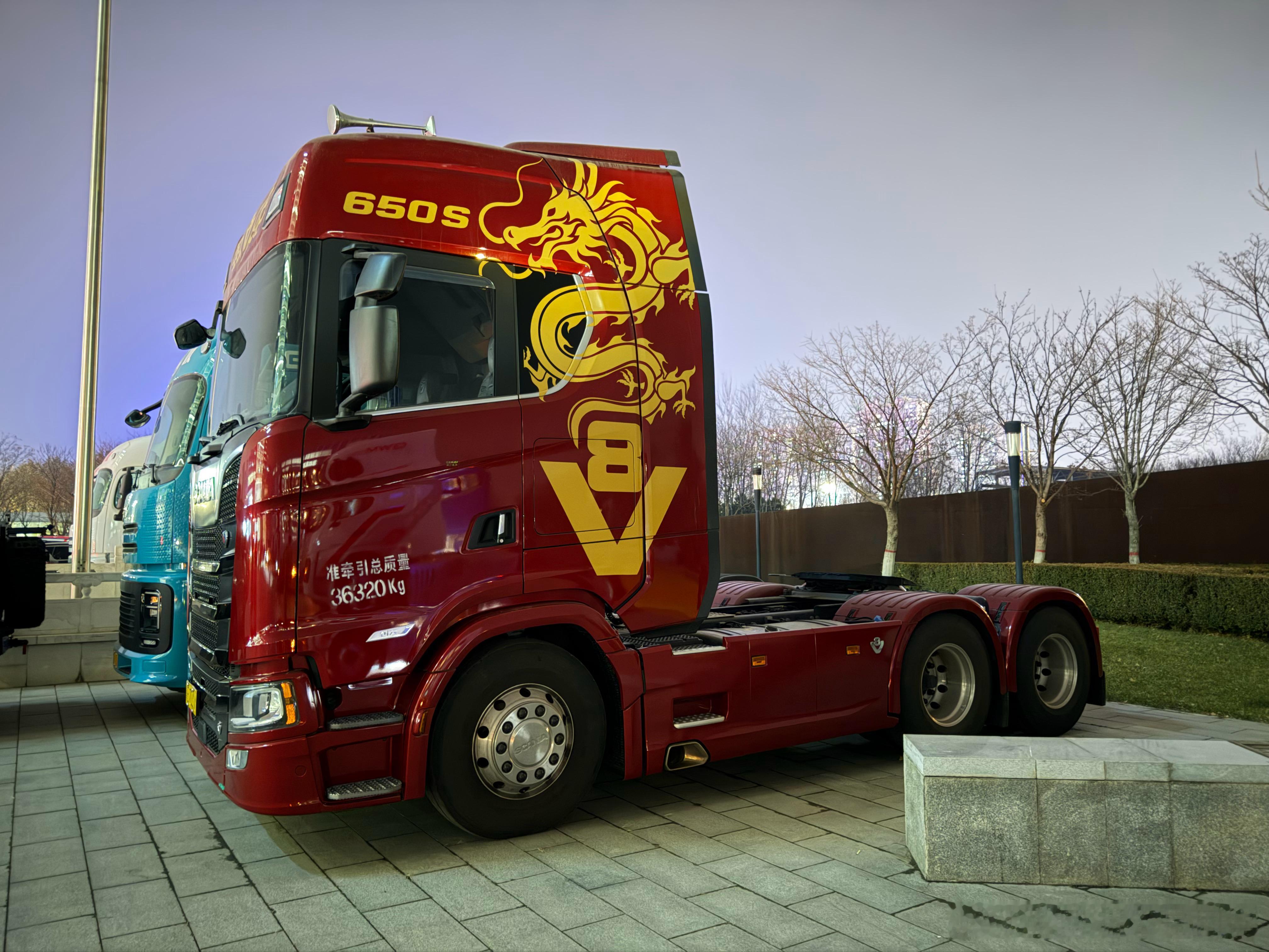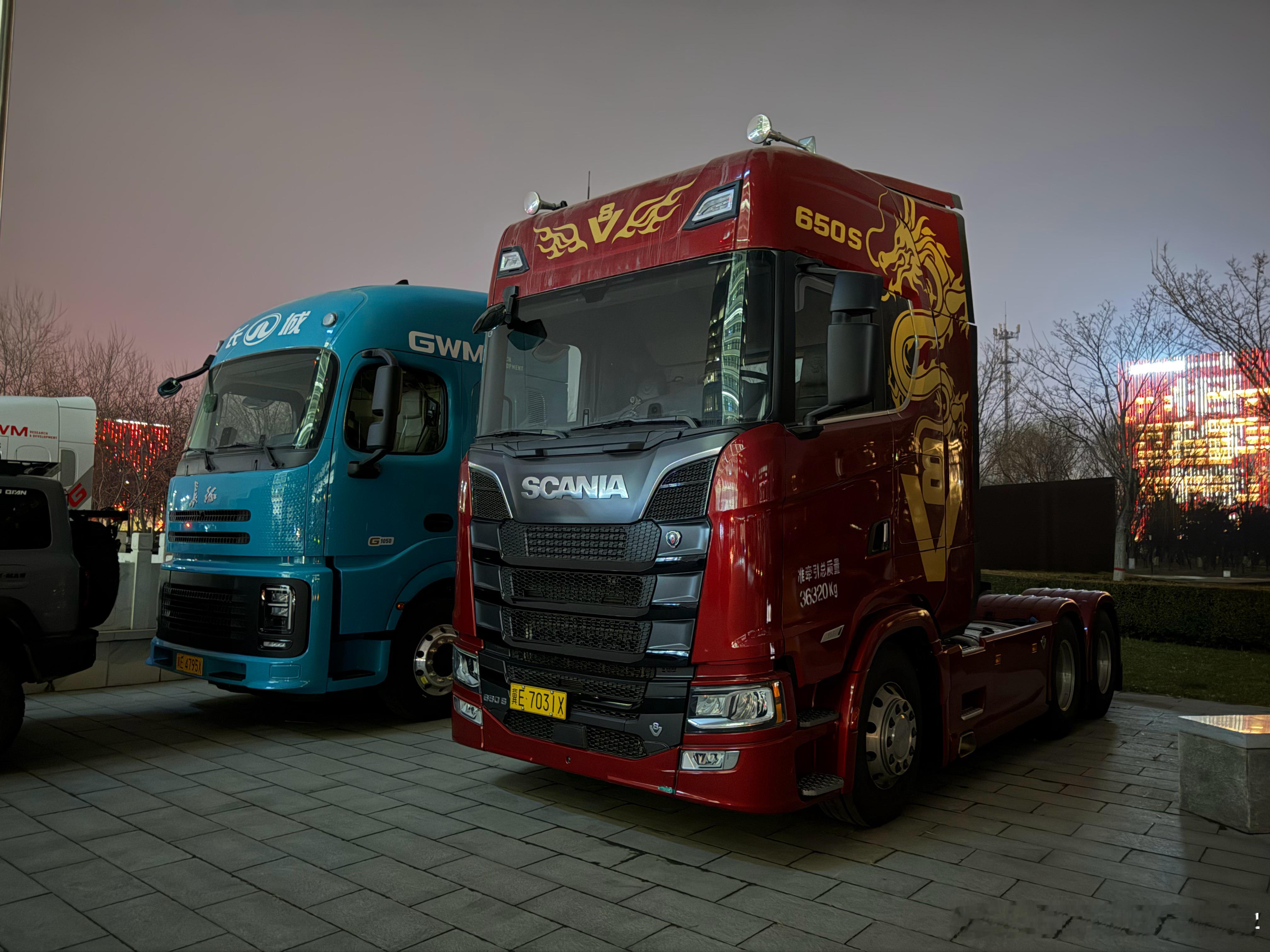 哦哟!长城总部的斯堪尼亚650S V8!!就从对标车来看,我知道长城的重卡一定很好第一次这么近距离的看到斯堪尼亚那种心里小鹿乱撞的感觉好微妙啊卡车届的瑰宝,公路之王,就这样停在你面前,并且是中国红、腾龙涂装,太漂亮了,恋爱了…