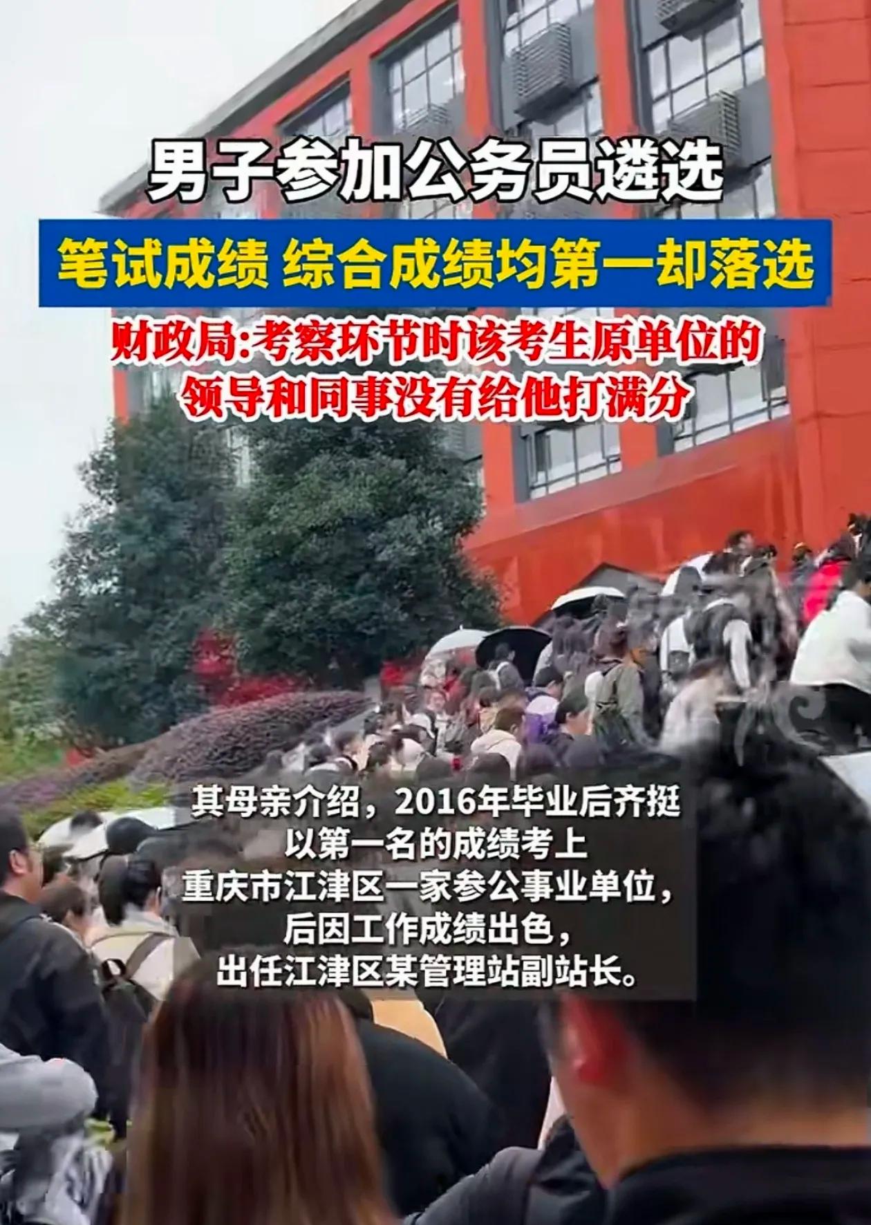 这下可真是把路走窄了! 重庆一男子考公笔试面试双第一、体检也过了,满心欢喜等录取,结果却栽在了考察环节,最终上岸的是笔试面试的第二和第三名! 原来原单位给男子的评价并不高,而另外两人的考察评分都是满分,男子又没有加分项加持,综合权衡后自然落了选。男子觉得这事有内幕,愤愤不平上网发帖讨要说法,可这么一闹,不仅没讨到公道,反而把原单位推上了风口浪尖。 考公考察本就是综合性评定,不是单看笔试面试成绩,这一步刷人其实很正常。男子与其揪着结果不放,不如想想自己在原单位的工作表现到底出了啥问题,这么闹下去,以后哪个单位还敢用他? 你觉得男子这种发帖讨说法的做法到底值不值?评论区来唠唠~考编考公体检 重庆事业编面试 考公面试 天津考公面试 云南考公面试 公务员公面试 重庆省考面试题