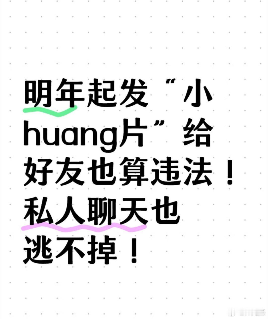 明年起发淫秽信息违法新《治安管理处罚法》第八十条:“无论传播场景是公开微信群还是私人私聊,只要证据确凿,均可处以十日以上十五日以下拘留,可并处五千元以下罚款;情节较轻的,也将面临五日以下拘留或一千元以上三千元以下罚款。”还是挺严的,私人私聊也不行了。感觉对小情侣来说不是太友好,没分之前是增加情调,分了之后就是呈堂证供还要注意以下3种情况,会直接构成刑事犯罪。❶不牟利但传播数量大;❷群主放任不管,群成员30人以上就可能获刑;❸有牟利行为,这种的哪怕只赚5000元就能定罪,最高能判10年!