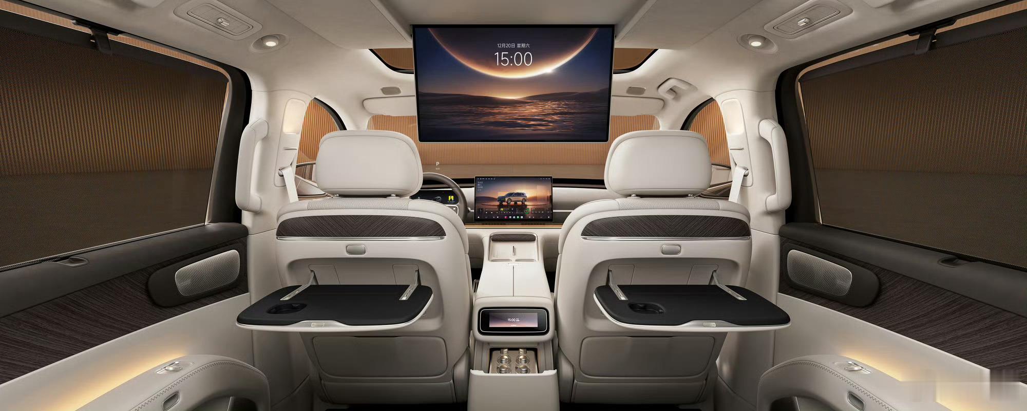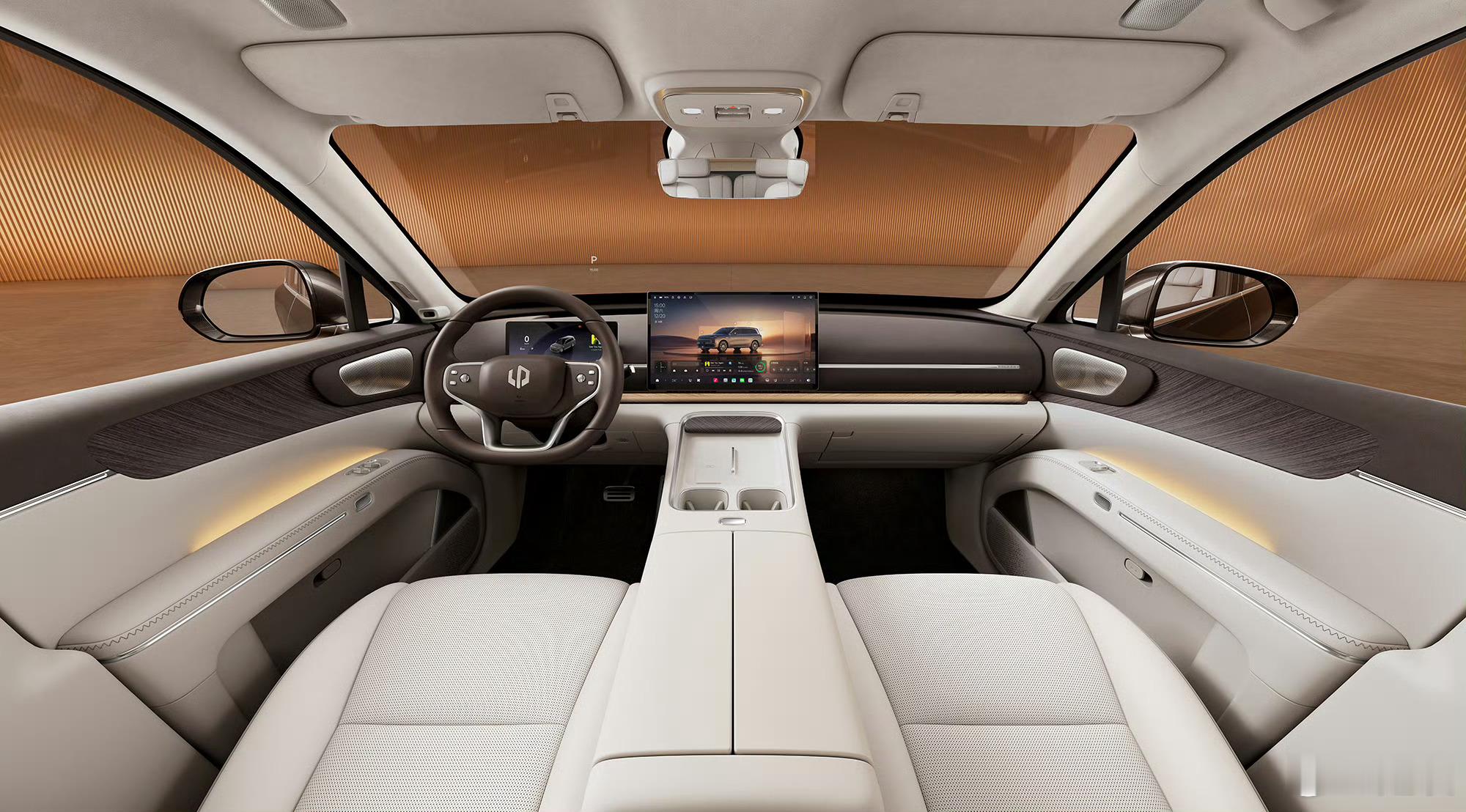 零跑D19 官方内饰公布!中控采用10.25英寸液晶仪表和17.3英寸屏幕组合,搭配60英寸AR-HUD抬头显示。标配主驾头枕音响,方向盘支持加热、集智能迎宾、个性记忆和四向电动精调。二排有零重力座椅、后排小桌板、车载冰箱、智能香氛系统、21.4英寸后排吸顶屏等配置。
