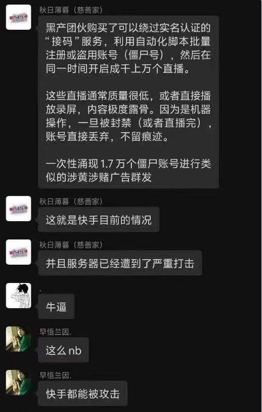 就在昨天刚公布自2026年1月1日起,传播淫秽信息将加大处罚力度之际,晚间快手直播平台就遭到了黑灰产的黑客攻击出现大量涉黄内容,难道真这么巧合? 似乎这些隐藏在国外的黑灰产在做某种挑衅,简直已经到了无法无天的程度。近些年我们一讲黑灰产大家第一想到的往往是诈骗,因为诈骗这些年实在太猖狂。但是另一个黑灰产色情行业也在通过和诈骗产业类似的手法,以国外为基地渗透祸害我国人民,而且迅速壮大。 对于这些猖獗的黑灰产,必须坚决予以打击,保持网络空间的纯净,大家怎么看?