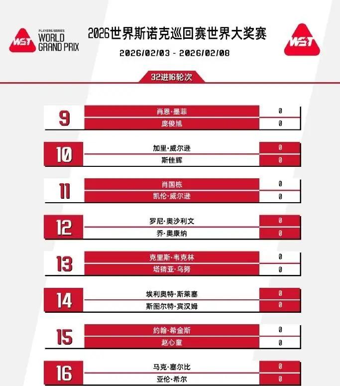 随着斯诺克苏格兰公开赛的落幕,入围世界大奖赛的32人名单正式确定,获得亚军的小将常冰玉成功获得入场券,另外还有周跃龙、 袁思俊、吴宜泽、丁俊晖、张安达、庞俊旭、斯佳辉、肖国栋、赵心童之前已锁定参赛席位,这样共有10位中国球员参加,再创新高。这项仅限单赛季排名前32的球员参赛的赛事,自2015年在威尔士的兰迪德诺首次举办,现在已经发展为正式的排名赛事,明年的第10届将是首次在英伦三岛以外举行,前9届赛事,奥沙利文和特鲁姆普各三次登顶,中国球员还有拿到过冠军。昨天进行了抽签仪式, 赵心童首轮就要对阵希金斯,丁俊晖对阵霍金斯,张安达对阵马克威廉姆斯,袁思俊对阵特鲁姆普,庞俊旭对阵肖恩墨菲,肖国栋对阵凯伦威尔逊,周跃龙对阵斯蒂芬马奎尔,常冰玉对阵利索夫斯基,场场是硬仗。