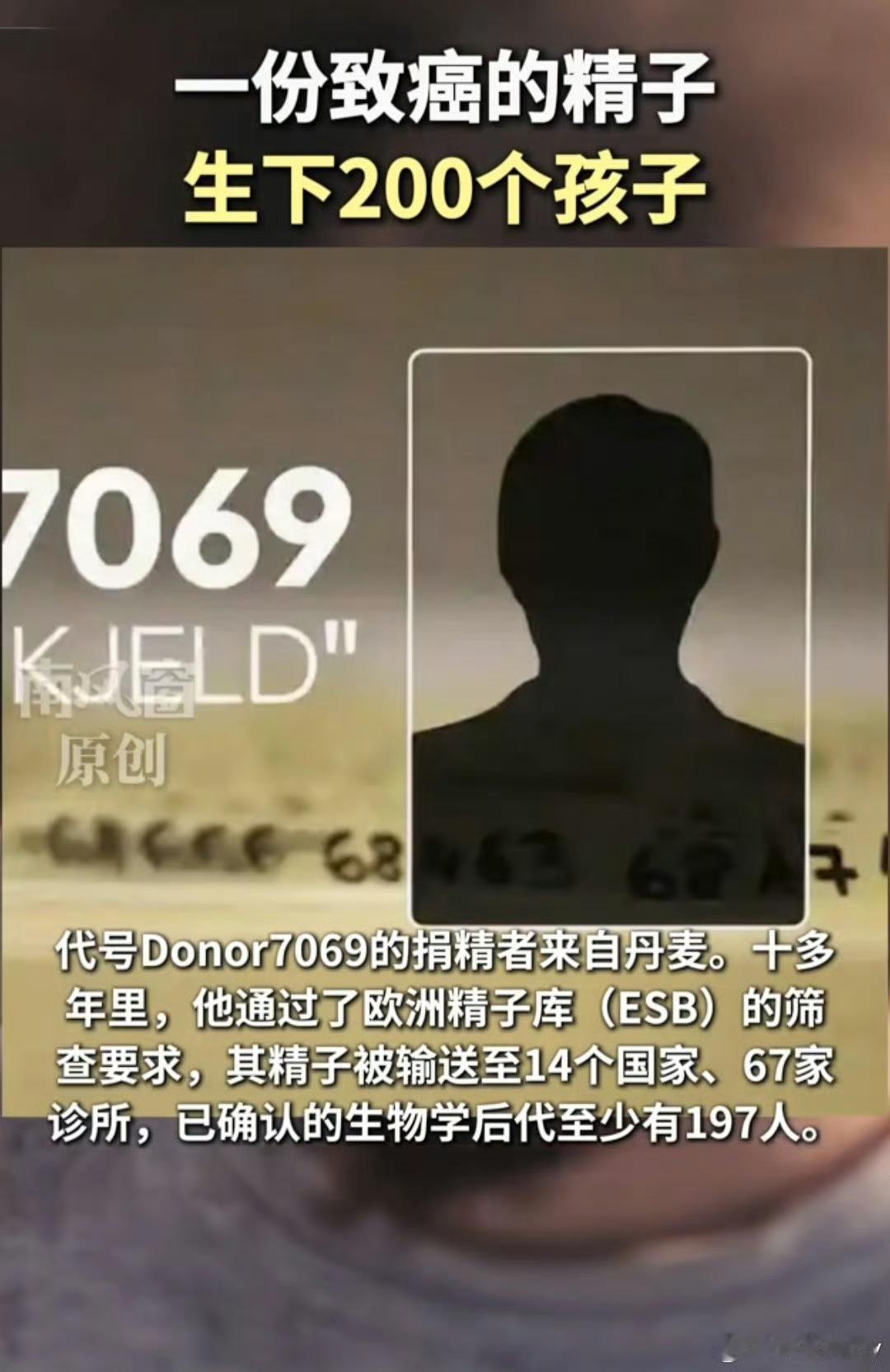 💥跨国精子库“杀人精子”曝光!200名孩子患癌,真相竟是…… 🚨全球震惊!14国200名孩子因同一精子患癌,捐精者身份成谜 - 致命基因扩散:丹麦捐精者Donor7069携带罕见TP53基因突变,其精子被销往14国67家诊所,导致至少197名后代终身患癌风险高达90%,已有10名儿童因癌症夭折。 - 17年“合法投毒”:该捐精者从学生时代开始定期捐精,直到2023年才被发现问题,而精子库竟以“数据保护”为由拒绝公开受害者总数。 🕒从“优质捐精”到“基因定时炸弹” - 完美人设崩塌:白种人、高学历、北欧外貌,Donor7069曾是多国单身女性的“理想选择”,精子库档案标注“健康无风险”。 - 筛查漏洞致命:TP53突变在捐精时未被纳入检测范围,传统血液检测无法识别其生殖系嵌合突变(仅20%精子异常),全基因组测序因成本高昂未普及。 🤯跨国监管成“筛子”,200个家庭成试验品 - 限额成空谈:比利时规定捐精者最多服务6个家庭,实际衍生53名子女;法国、德国限额10-15名,实际波及46个家庭。 - 数据孤岛酿悲剧:欧盟无统一数据库监控跨国捐精,精子库为牟利疯狂倾销,直到希腊医生发现3名同源患儿患癌才揭开冰山一角。 🔥家庭悲剧实录 - “癌症随时可能来敲门”:法国母亲Céline接到通知时已过去两年半,孩子需每年接受全身MRI、脑部扫描,成年后或面临预防性乳腺切除。 - 血缘婚配风险:197名同父异母后代分散多国,未来可能因不知情导致近亲结婚,加剧伦理危机。 💡行业反思:谁该为生命买单? - 技术迭代刻不容缓:将TP53、BRCA1/2等高危基因纳入强制检测,动态更新筛查标准。 - 监管破壁:欧洲人类生殖学会建议设定跨国统一上限(单捐精者后代≤50人),建立跨境追踪系统。 - 伦理警示:辅助生殖机构需明确告知“基因筛查非绝对安全”,打破“优质捐精者”盲目崇拜。 跨国精子库致癌事件 200名孩子的基因噩梦 谁为生命安全兜底 网友辣评: - “精子库:我们合规了,但孩子没了!” - “这哪里是捐精,分明是合法投毒!” - “建议全球追查捐精者,让他坐牢!” 互动话题: - 如果是你,还敢选择精子库生育吗? - 基因筛查该“一刀切”还是“平衡成本”?评论区聊聊! (本文综合多方信息整理,具体细节以官方调查为准)