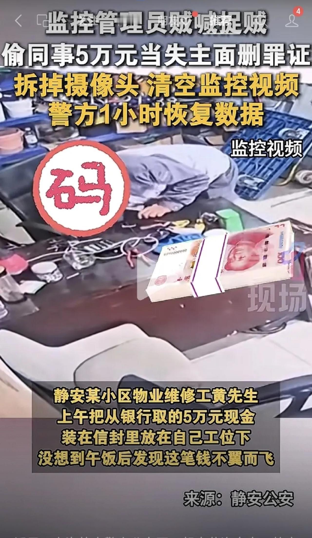 见过偷钱的,却没见过偷完钱还主动陪着失主去报警的!上海这位“人才”,径直把自己送进了警局,网友调侃:年度最“笋”小偷实锤了😂 上海静安的黄师傅取了5万现金放在工位,吃完饭回来钱就没了,办公室里只剩下负责监控的同事侯某。黄师傅一查看监控,好家伙,偷钱的正是侯某本人! 更令人叫绝的是侯某,他当场删光监控视频、拆掉SD卡,还嘴硬说没删,甚至“热心”地陪着黄师傅去派出所,心里恐怕还觉得没证据警察拿他没办法吧? 结果警方仅用一小时就恢复了数据,偷钱全过程被拍得清清楚楚!侯某顿时傻眼,钱也被找回,如今已被采取刑事强制措施。 网友评论笑翻了天: “这小偷莫不是来送人头的?陪受害人报警真是活久见” “删监控就能瞒天过海?太低估警察叔叔的技术了” 我着实被侯某的迷之自信逗笑了,以为耍点小聪明就能掩盖罪行?如今刑侦手段如此硬核,“伸手必被捉”这话可不是随便说说的! 你们见过如此离谱的小偷操作吗? 人的命运天注定,你同意吗 人与人之间最珍贵的东西是什么?