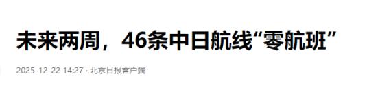 中方交涉通知,直接递到东京,高市收到噩耗:46条中日航线已清零。   中方这次算是把态度摆到明面上了,交涉通知直接递到了东京核心层面,日本首相高市早苗这下是真真切切收到了实打实的噩耗——未来两周内,46条中日航线的所有计划航班全被取消,彻底清零,一条不剩。   这不是什么小道消息,而是航班管家最新统计的铁数据,截至2025年12月22日,2026年1月中国大陆往返日本的航班取消量已经突破两千班,整体取消率高达40.4%,其中这46条航线更是直接被团灭,从2025年12月23日到2026年1月5日这两周,连一个班次的计划都没有了。   这46条航线可不是零星的冷门航线,覆盖面广得吓人,涉及中日双方共38座机场。中国这边,从长三角的上海、南京、杭州,到珠三角的广州、深圳,再到西南的成都、重庆,东北的沈阳、哈尔滨,还有武汉、西安、昆明、福州等26座城市都在其中。   日本那边更不用说,大阪、名古屋、福冈、札幌、东京这些热门目的地全包含了,就连静冈、冈山、鹿儿岛这些地方的机场也没能幸免。   尤其是上海,浦东和虹桥两大机场就有14条航线被全部取消,是这次取消潮里受影响最密集的城市;而大阪关西机场作为中方航点直飞最多的日方目的地,有超过10条航线直接停飞,曾经热闹的中日空中通道,如今在这些航线上彻底断了档。   可能有人会问,好好的航线怎么突然就大面积取消了?其实这不是突发情况,而是之前一系列事件的必然结果,中方的交涉通知更像是把话说透了,航线清零就是最直接的回应。   事情的源头还得追溯到11月中旬,当时日本首相高市早苗公然发表涉台错误言论,这种言论严重违背中日四个政治文件精神,直接损害了中日关系的政治基础,也彻底伤害了中国人民的感情。   高市早苗收到的可不光是航线清零的通知,这背后带来的连锁反应才是真的噩耗。首当其冲的就是日本旅游业,现在本来是日本的冬季旅游旺季,尤其是北海道的冰雪游、关西的红叶季,往年这个时候都是中国游客扎堆去的时候,也是日本旅游业最赚钱的时节,但现在全凉了。   有在日本四国地区做中文导游的周女士就说,原本下个月要带的两个大陆团全取消了,最近和同行见面聊的全是“你的中国团怎么样了”,本来以为能借着旺季多赚点,现在心里全是不确定,感觉又要回到疫情时的萧条状态。   而且负面影响还在不断蔓延,不光是旅游业,中日之间的多个交流活动已经被叫停,中方还暂停了进口日本水产品,日本的汽车等行业也面临着失去中国庞大市场的风险。   面对这一系列连锁反应,日本各界也开始担忧,高市早苗的错误言论已经给日本的经济、外交和安全带来了恶劣影响,再不想办法纠正,损失只会越来越大。   中方的态度一直很明确,不是要故意打压日本,而是针对日方的错误言行作出的合理反应。就在12月7日,吴江浩大使还就日本自卫队飞机滋扰中国海军航母编队训练,向日本外务事务次官提出了严正交涉和强烈抗议,明确要求日方停止污蔑抹黑,严格约束一线行动。   之前外交部发言人毛宁也回应过,日方应当恪守中日四个政治文件的精神,立即纠正错误言行,这样才能防止中日关系受到进一步损害。   中日航线清零不是目的,而是中方传递的一个明确信号:损害中日关系政治基础的事不能做,伤害中国人民感情的事更不能做,想要恢复正常的人员交流和经贸往来,日方得先拿出诚意,纠正自己的错误。   现在46条航线清零的事实就摆在眼前,影响已经实实在在地显现出来了。对于高市早苗政府来说,这绝对是个躲不开的噩耗,接下来是继续硬扛着不纠正错误,让损失进一步扩大,还是及时醒悟,拿出纠正错误的实际行动,重新修复中日关系的基础,全看日方的选择。   对于中日两国的民众和企业来说,大家都希望中日关系能回到正轨,毕竟正常的人员往来和经贸合作,对双方都是有利的。但这一切的前提,都得建立在日方尊重历史、尊重中方核心利益的基础上,这一点,日方恐怕得好好想清楚了。   导游没团带,酒店的日子更难过。日本广播协会的报道显示,随着中国赴日团体游的大面积取消,日本不少酒店的营收已经出现了明显下滑,尤其是北海道的住宿从业者,对未来几个月的业绩深感忧虑。   厦门的旅行社工作人员也透露,往年这个时候,日本冰雪游产品都是热销季,咨询的人络绎不绝,但最近不仅咨询的人少了,已经预订的产品也有不少人退订。   更有日本经济学家估算,要是赴日中国游客数量大幅下降,日本的国内生产总值可能会被拉低0.36%,经济损失合计高达2.2万亿日元,差不多相当于1000亿元人民币。