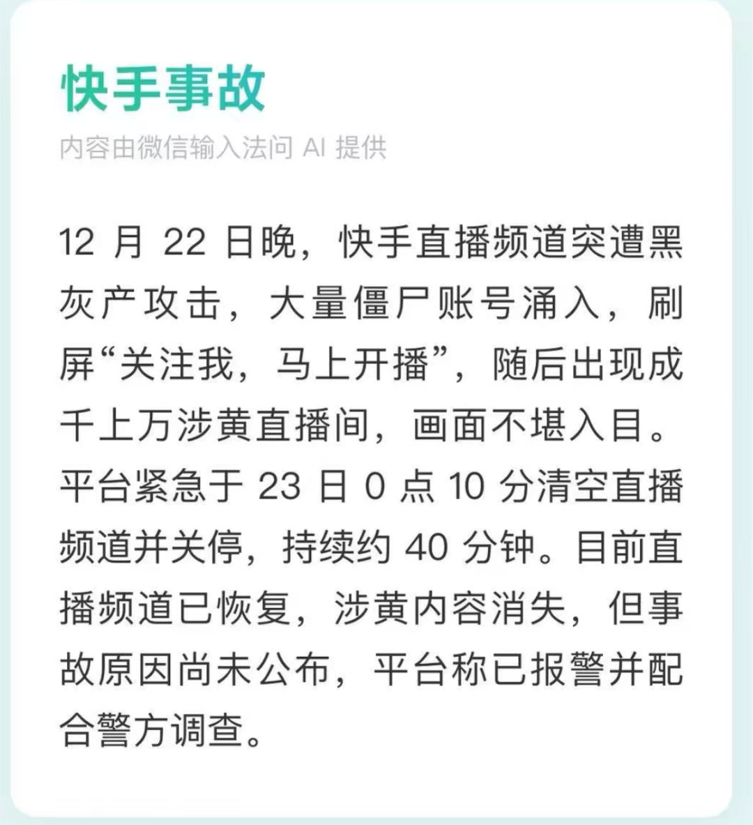 太猖獗了,真是似法律为无物!快手遇黑产集中推流攻击,部分直播间出现涉