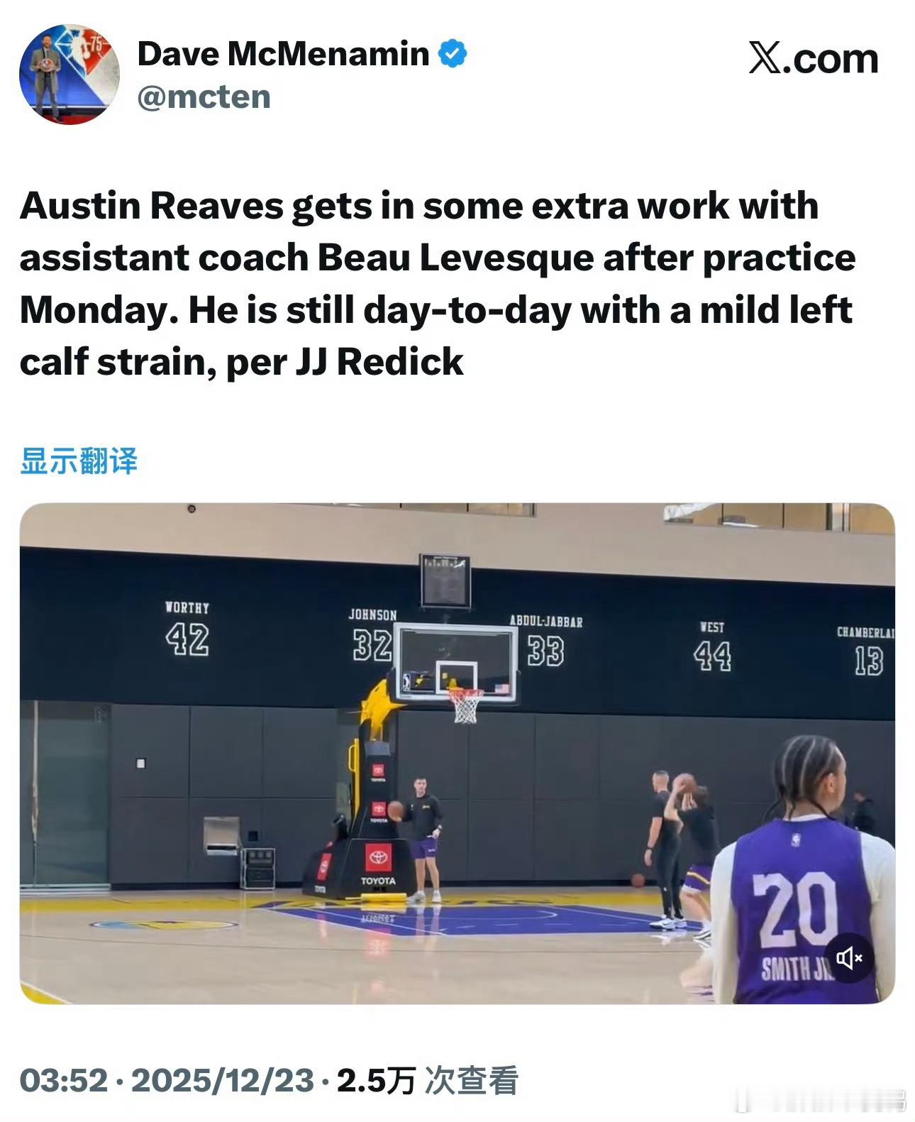 第一条——东契奇东契奇在前天对战快船的比赛中,意外受伤离场,在今天雷迪克透露:“东契奇伤病源于快船后卫博格丹膝盖撞到了东契奇的左小腿,被确诊为左小腿挫伤,明天将缺席比赛,好在无大碍!今天东契奇也参加了球队训练,左小腿绑着绷带,目前雷迪克已将他列入每日观察名单中,且雷迪克还表示,东契奇小腿伤势已出现反复情况。“本赛季这种情况已经发生过好几次了。”同时他补充称,球队正在研究后续对抗中保护东契奇腿部的办法。 本赛季至今东契奇缺席了6场比赛,场均34.1分8.6篮板8.8助攻1.6抢断三分命中率32%!第二条——艾顿艾顿将在明天迎来复出!据他自己透露此次左肘酸痛,是在上周和马克威廉姆斯对抗中导致的。他说:“那场比赛的身体对抗很激烈,大家的肾上腺素都很高,我在尝试抢篮板时与马威纠缠在一起,可能是在卡位的时候稍微拉伤了左肘。已经检查过了,就是有点紧绷而已。”上周一湖人对阵太阳的比赛,艾顿11中10贡献20分13板2断1帽,马威10中9贡献20分6板3帽,艾顿对于湖人来说还是太重要了,近两场湖人的比赛明显篮板跟内线护框完全真空,明天顿宝回归,对于湖人来说是天大的好消息!第三条——里弗斯目前小里已从的伤病状态已从小腿拉伤转为出战成疑了!在此前小里因小腿拉伤缺席了3场比赛,湖人取得2胜1负!明天里夫斯有可能迎来复出,届时老詹的压力也会小很多,本赛季里夫斯场均27.8分5.6篮板6.7助攻,是湖人第二进攻点,湖人在缺少他的比赛,进攻端时常陷入停滞,本赛季小里也有望首次入选全明星,今年可以说是小里的生涯之年了!湖人艾顿东契奇左腿挫伤湖人国度湖人vs太阳洛杉矶湖人