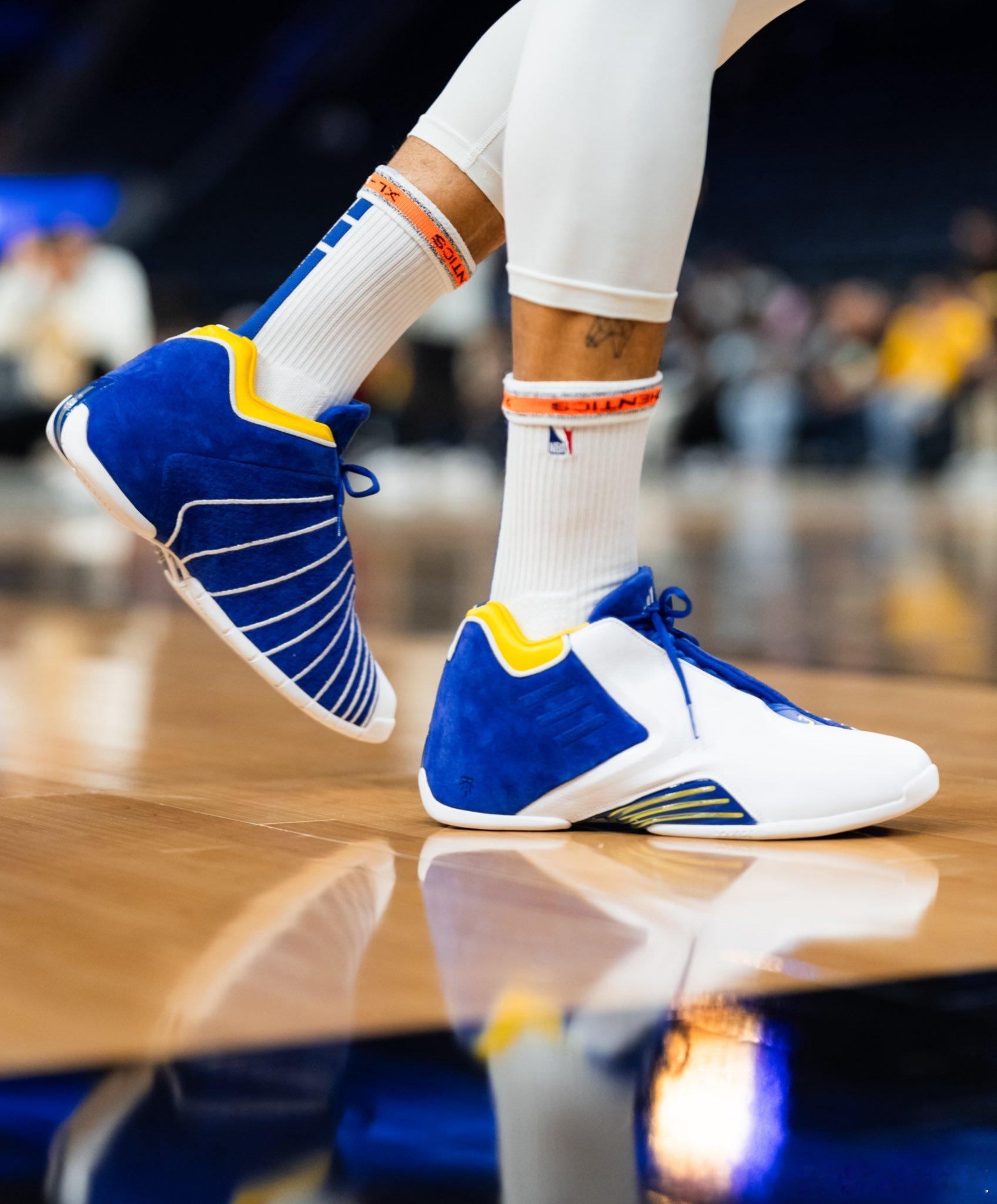 库里上脚麦迪3!这个颜色和训练服很搭!
