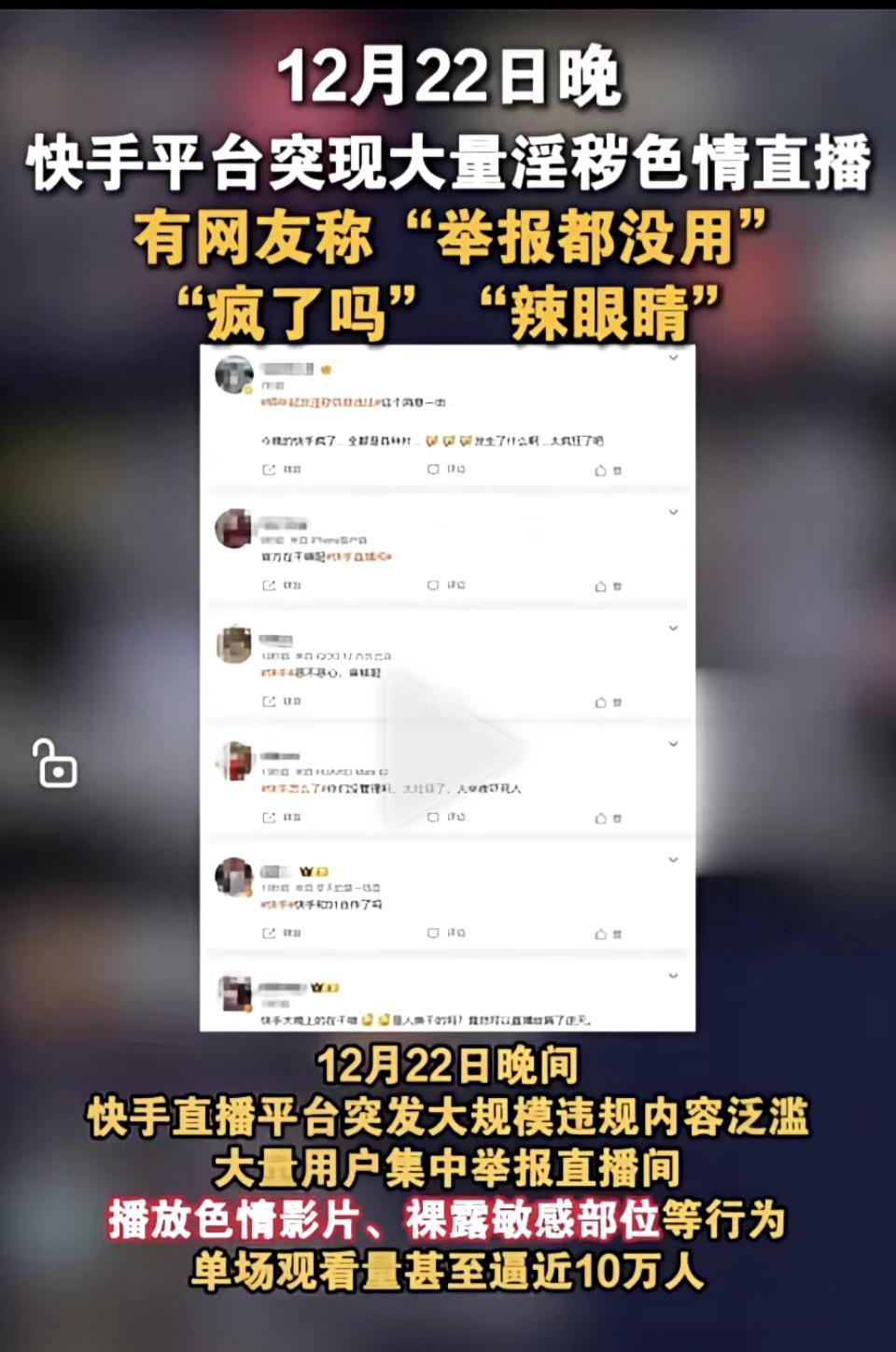 12月22日晚,快手那可真是“热闹”坏了!大量用户吐槽直播间出现一堆色情内容,像播放淫秽影片、主播擦边低俗表演啥的,有的直播间观看人数上万,举报都没用,简直“辣眼睛”。这些违规直播间是新注册的小白号或僵尸账号集体开播,播放预制非法视频,平台封都封不过来,审核系统疑似失灵。 快手回应是遭黑灰产攻击,还报了警。专家说黑灰产进入“自动化攻击”时代,平台靠传统人工审核根本招架不住。当晚快手采取紧急措施,直播频道一度关闭,功能也有波动。这事不仅让用户体验变差,23日快手开盘股价还跌了。希望平台能加强技术防御,别再让这种事发生了。 快手平台 快手 快手乱象 快手平台骗局 快手站 快手账号 快手商业化