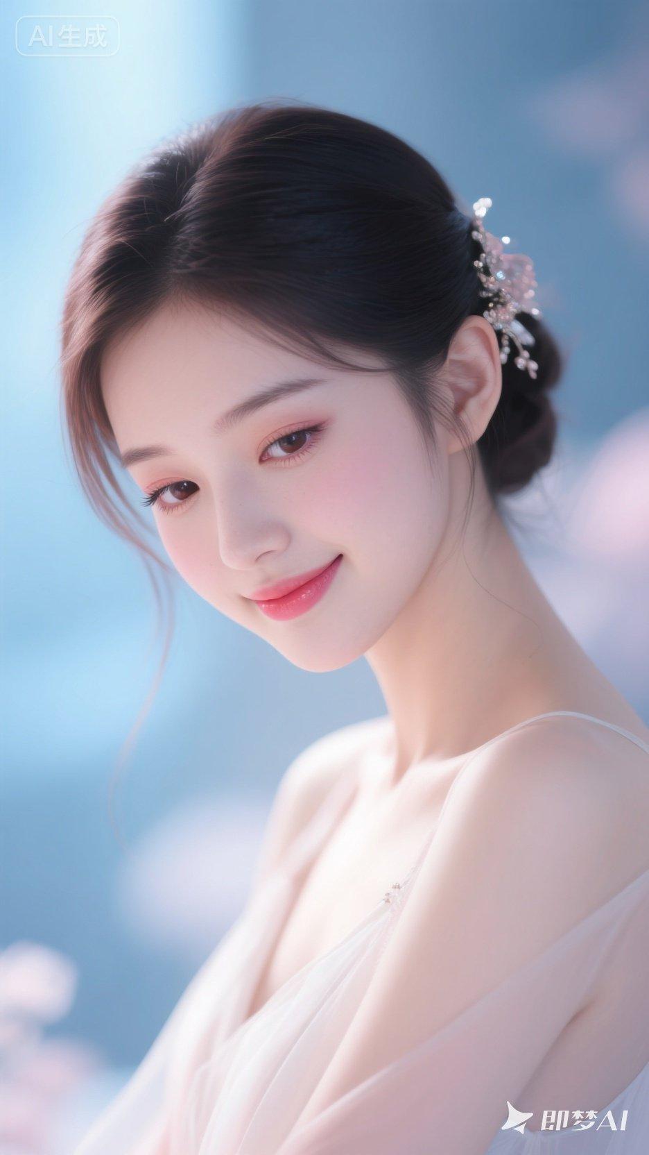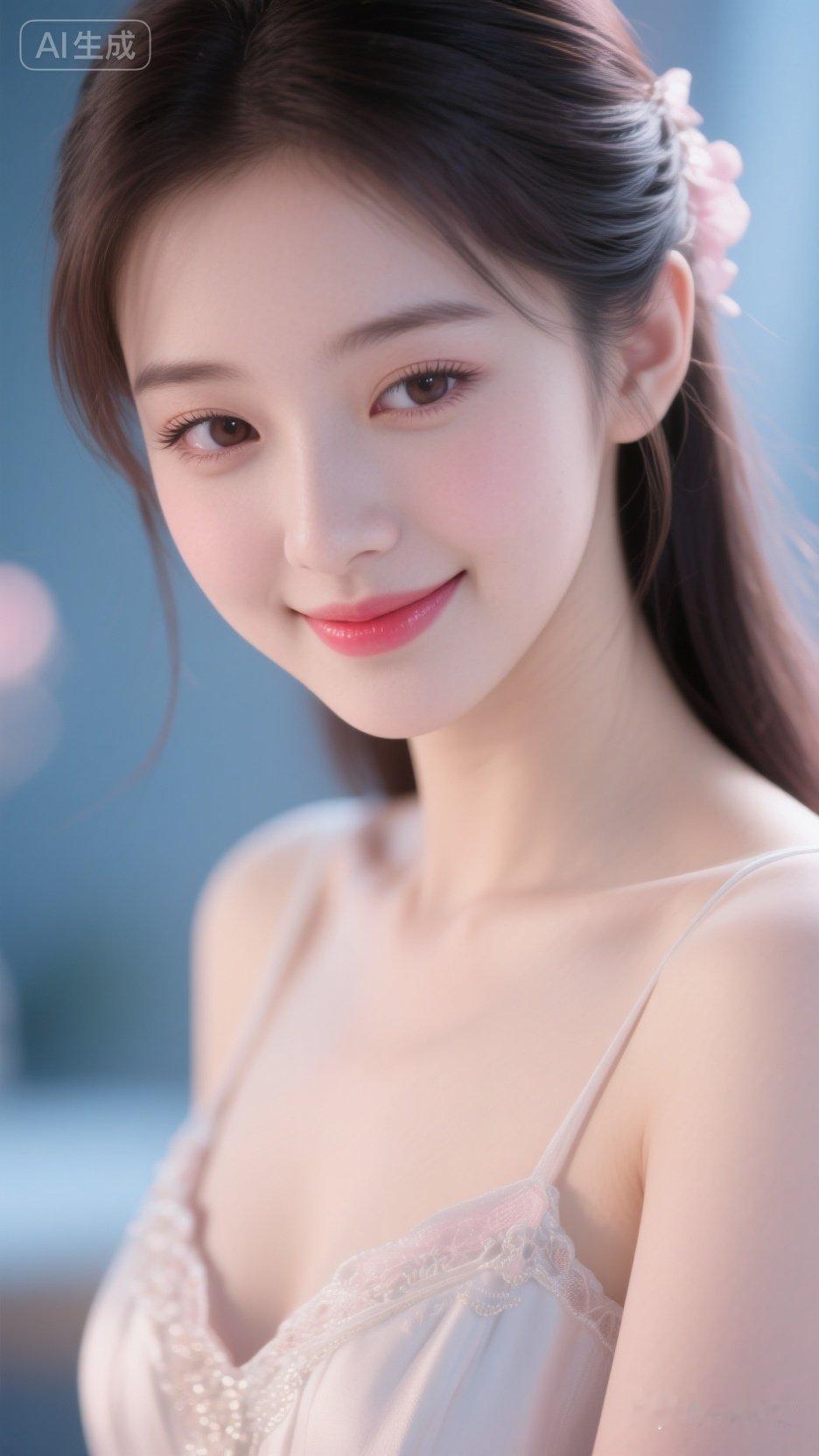 温柔粉少女,甜美妆容,优雅耳环,清新自然。