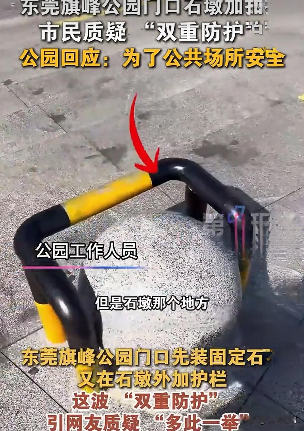 看见公园石墩穿上了“铁栏杆外套”,我愣是没想明白——这防的到底是车,还是把行人都当成了铁头娃? 这就像家长怕孩子摔跤,给整个游乐场铺上三厘米厚的海绵。安全是安全了,可孩子也学不会自己看路了。城市管理有时太怕那个“万一”,于是栏杆越加越多,路越走越窄。 最扎心的是那个缝隙——窄到落叶都卡住,环卫工得费力去掏。这些栏杆其实防不住真正的危险,防的只是管理者心里那个“万一出事谁负责”的焦虑。 当所有石头都被套上笼子,我们或许该想想:真正的安全,是让人学会辨别风险,而不是把全世界裹上泡沫纸。 石墩加护栏