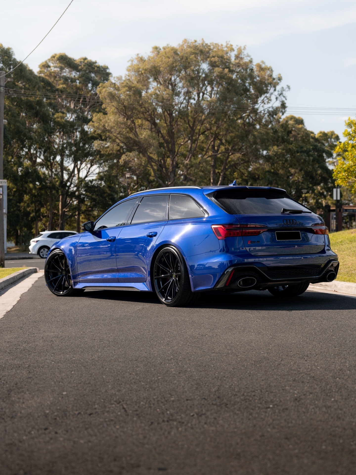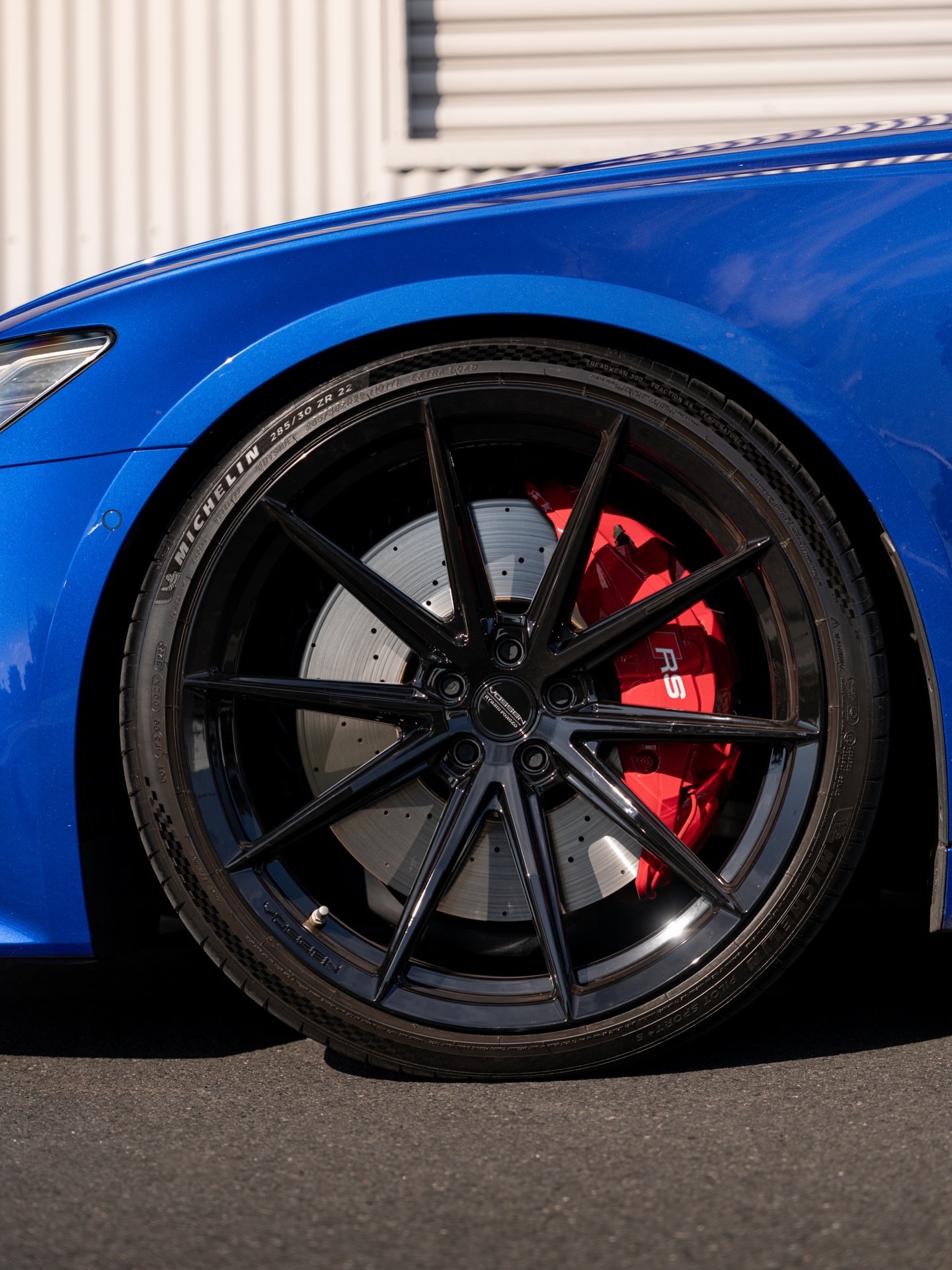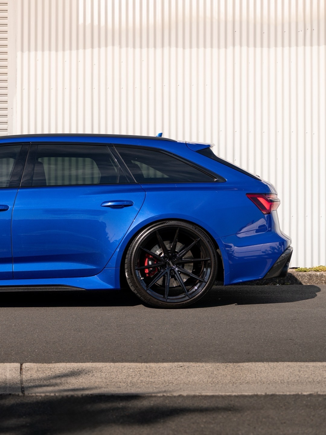 您未曾意识到需要的车轮。新款22英寸vossen HFX-2光亮黑色装在奥迪RS6上,搭配高度可调弹簧套件,完美调整姿态。奥迪rs6汽车改装car时尚 厦门