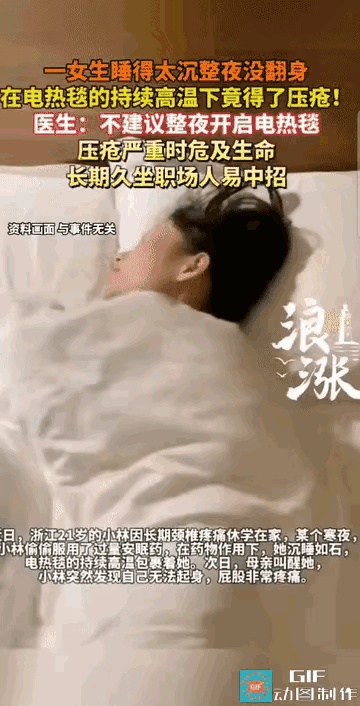 “防不胜防!”浙江杭州,一21岁女生因晚上睡得太沉,整夜未翻身的她,在电热毯持续