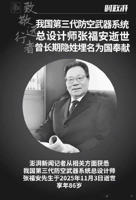 张福安先生用60年的坚守护佑家国,他的名字曾是绝密,功绩却永载史册。 向这位默默奉献的国之脊梁致敬,先生千古,精神长存🕯️