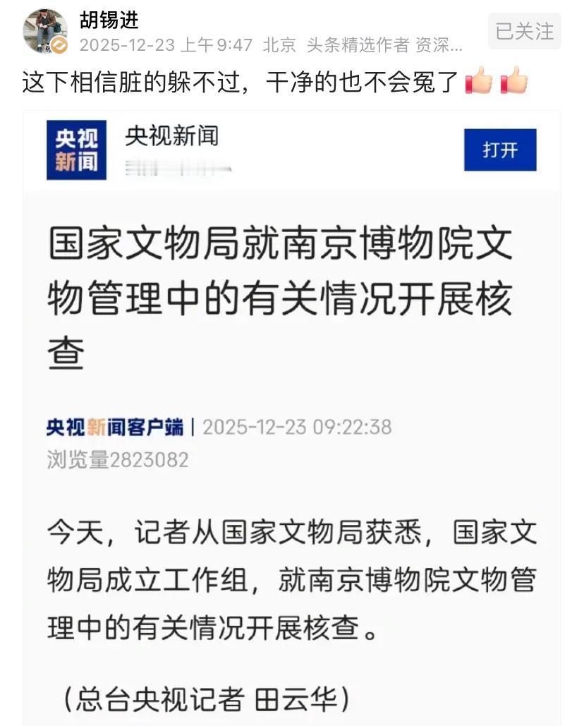 南京博物馆,一个历史厚重的地方,肮脏也与之并存。国家文物局出手了,能撼动“骨灰级蛀虫”和其“背后的势力”吗?能彻底“刮骨疗毒”吗? 看到网上一个未经佐证的信息: 毛主席给警卫李银桥写的《七律.长征》真迹,都被权贵书记“一借不返”。那可是李银桥啊,稍微了解历史的人都知道李银桥和老人家的关系。可想而知,权贵的可怕。 所以,天理昭彰,希望这个工作组名副其实,让蛀虫归案,让光明人间。 大家拭目以待吧! 南京博物院 南京国家文物 南京博物馆拍卖 违删!