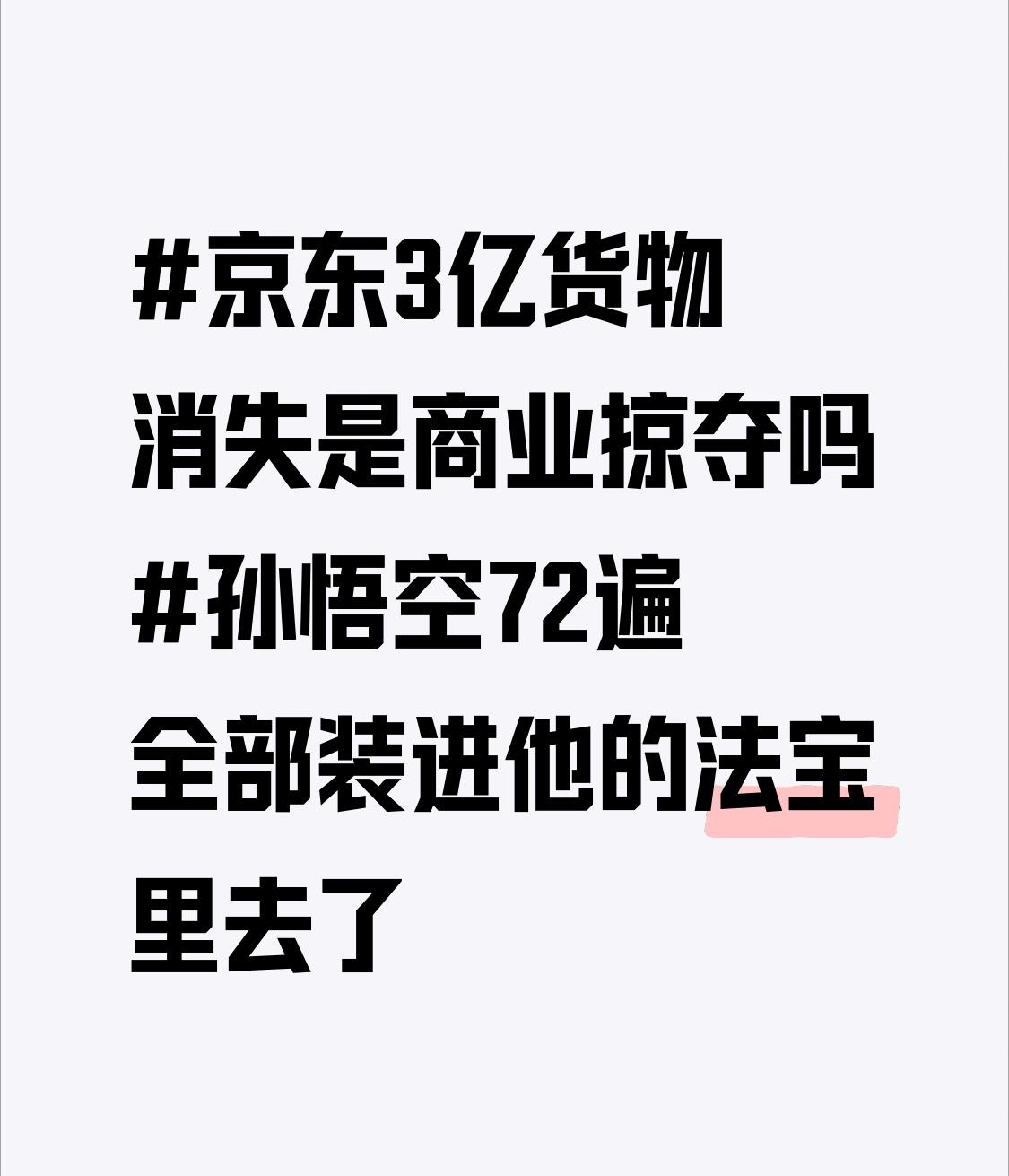 这“京东3亿货物消失”的事儿,说像被孙悟空用法宝收走了还挺形象。不过这到底是不是商业掠夺,可不能轻易下结论。商业世界里,货物消失的原因有很多,可能是供应链出了问题,也可能是管理上有漏洞。要是真有人恶意搞商业掠夺,那可太不地道了,就像在市场这个大舞台上耍阴招。但在没搞清楚真相前,还是得理性看待。说不定最后调查出来是一场乌龙呢。希望能早日查明真相,给大家一个交代。