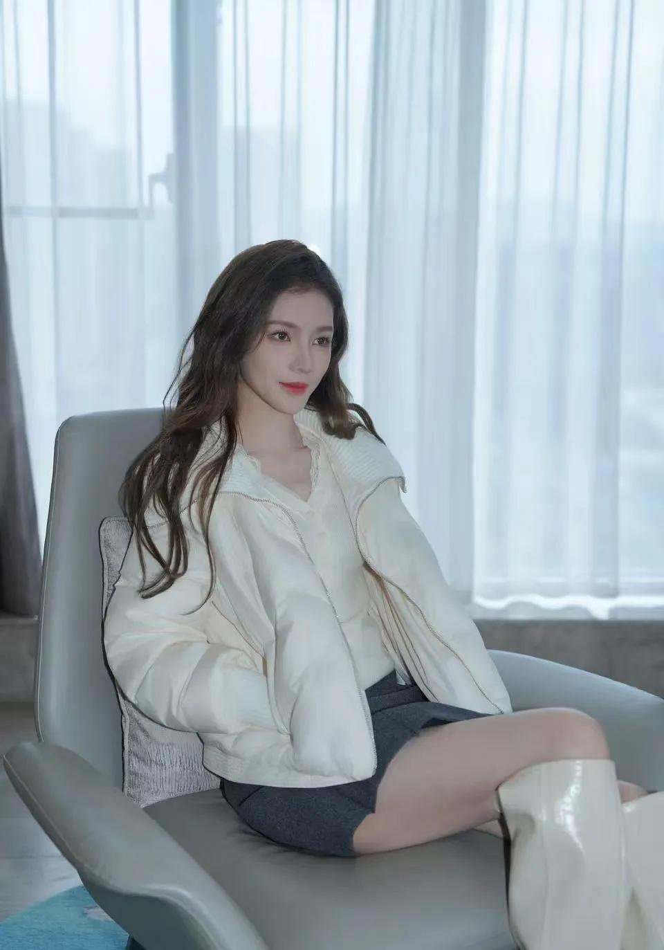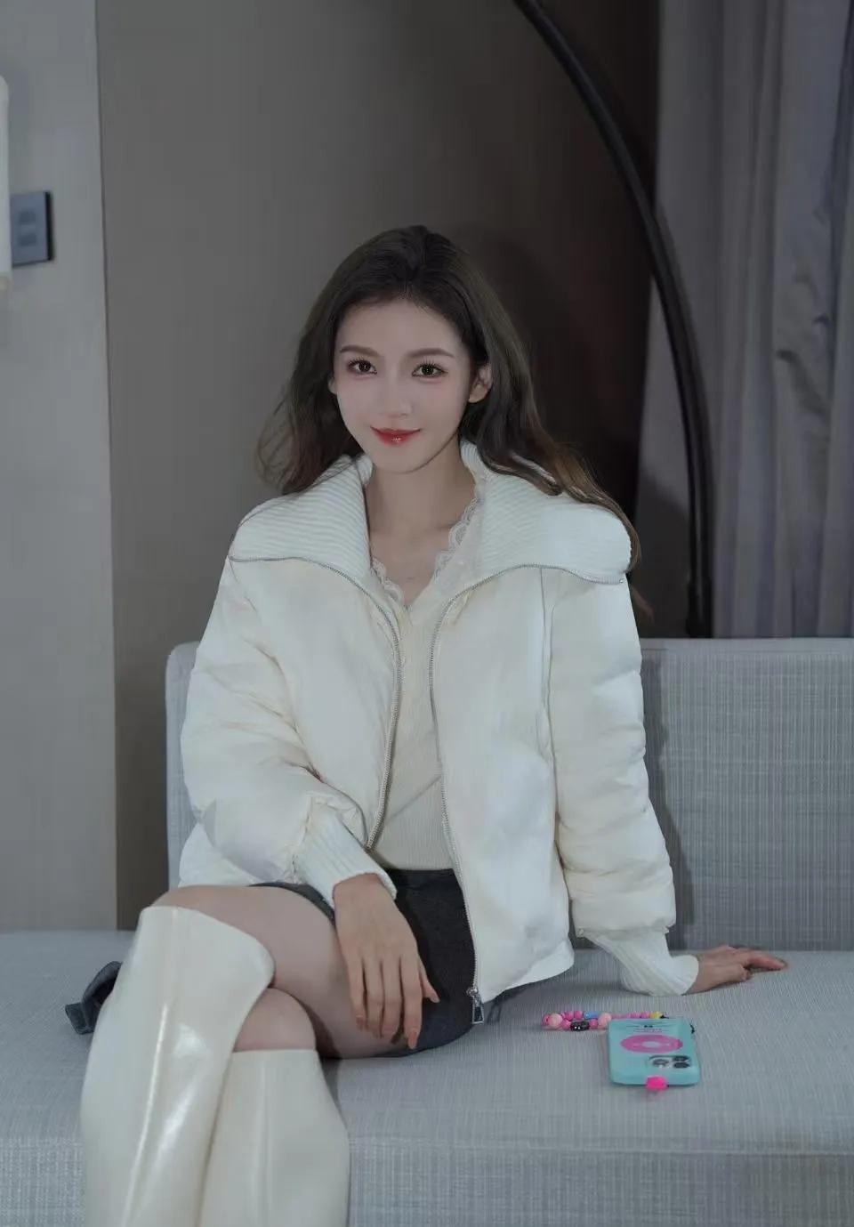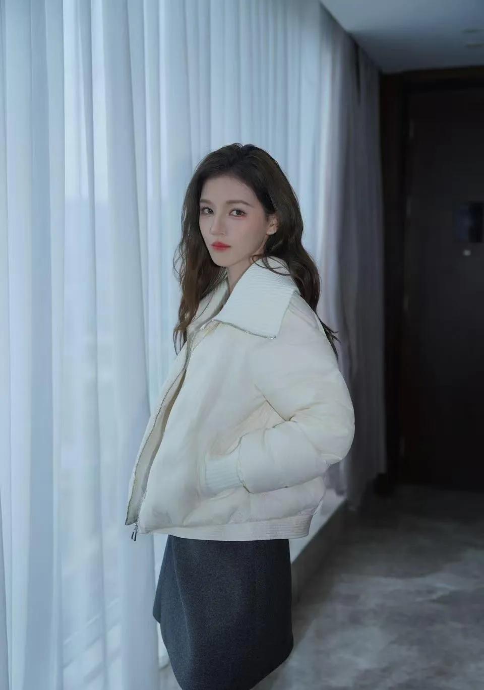 张予曦这波冬日穿搭直接封神! 米白羽绒服+短款灰裙+长靴,甜酷氛围感拉满!大翻领+针织拼接细节,保暖又显贵,这“轻熟女冬日模板”谁穿谁美~