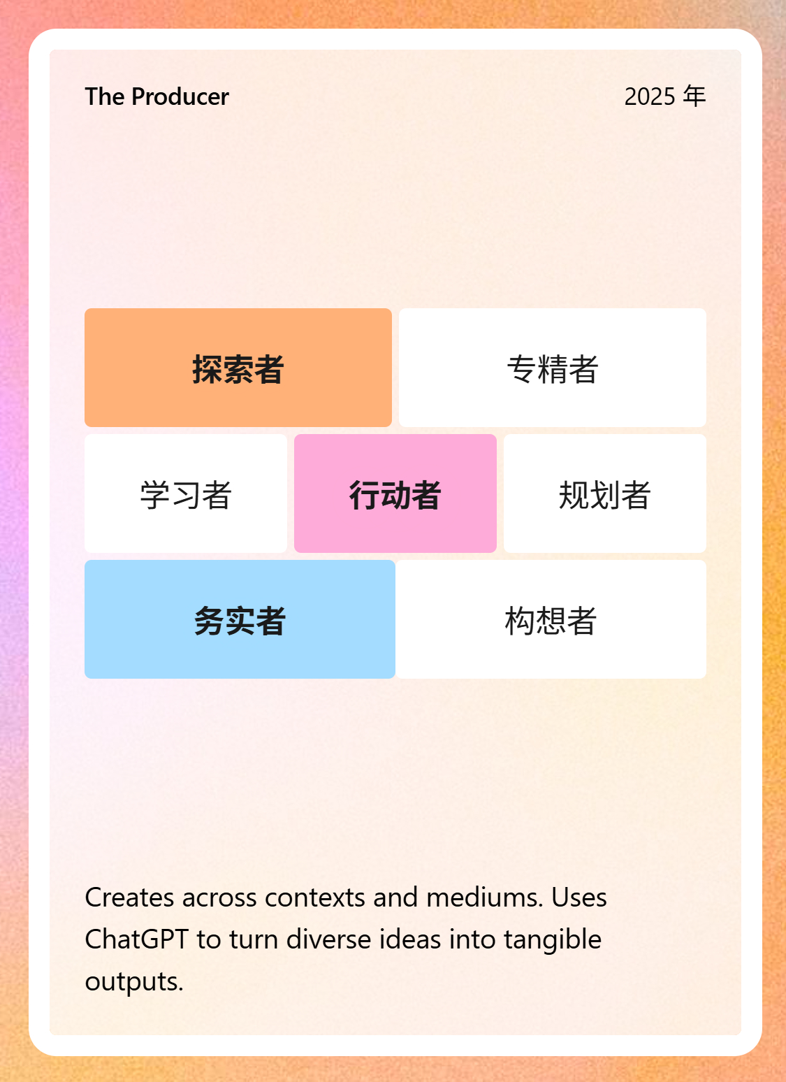 刚刚 AI 给我生成了一份 25 年的使用报告,简单总结了下我的创作风格、内容偏好,还有我常说的话。结果给我看懵了,它说我常讲的一句话是“你他妈的傻逼吧”……ChatGPT 说实话我生活里几乎不说脏话,但它也不会完全瞎编,说明25年的AI还是有点傻的,都给我气的说脏话了希望 26 年AI能聪明点!也少气我一点! 回头看看千问、豆包有没有报告,也给你们看看