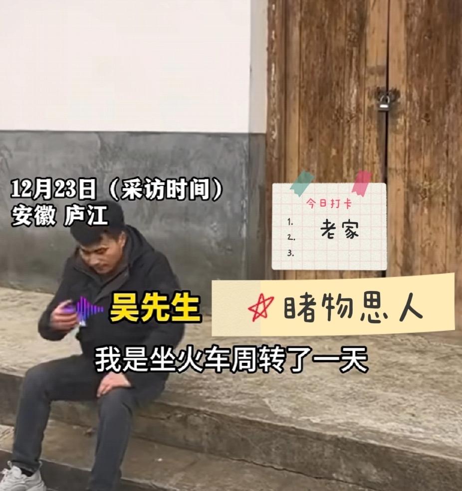 凄凉!男子火车周转1000多公里到老家后发现没带家门钥匙,父母又已经去世,只能坐在门口台阶上看着满院荒草! 安徽庐江的吴先生在广东谋生,已经许久没回家看看。12月23日,吴先生坐了一整天的火车,直到傍晚才到家。 看到紧闭的屋门,吴先生才想起来自己没有带家里的钥匙。毕竟父母都在的时候,家门口总会有人等着自己回家。曾经,自己是不需要带钥匙的啊! 吴先生坐在门前的台阶上,没有父母打理的小院里,已经长满了杂草。曾经和父母在院子里的说笑打趣的时光,似乎就在昨天。 睹物思人,院子里的每一寸土地都充满了父母的气息。爸爸妈妈一定想不到,自己的孩子,还是如年少时一般,总是忘带钥匙吧。 小时候忘记带钥匙,就会坐在家门口等父母来开门,每次都能等到。可如今,等再久,也等不到了, 他们肯定想说:“孩子,下次一定记得带钥匙,回屋里坐坐,外面冷!”亲情经历分享 父母