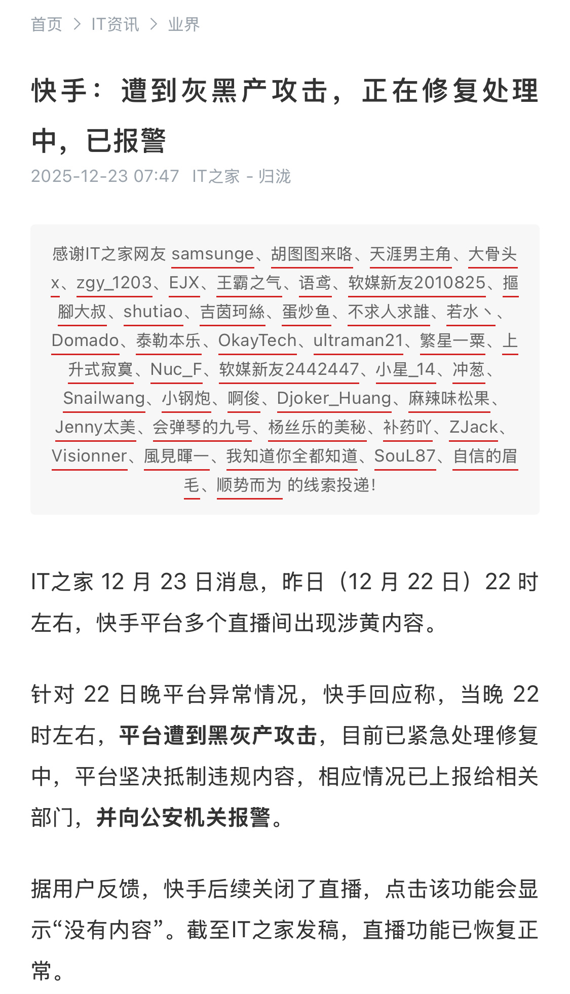 快手遭到黑灰产攻击这将引起的是大家对于快手的“信任的崩塌”!