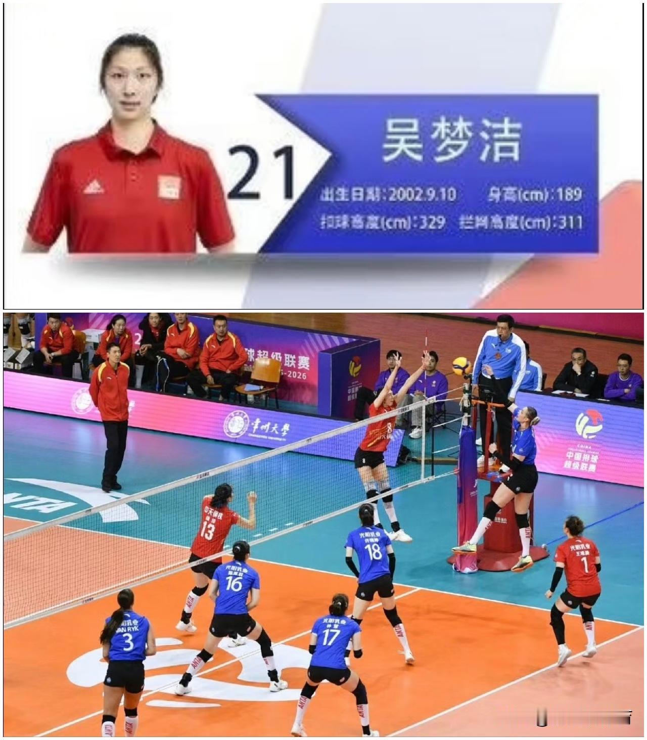 吴梦洁摸高3米31名列中国女排历史第一。江苏女排更新了排超联赛相关资料,队长吴梦洁的最新摸高数据已经达到了3米31,拦网高度也达到了惊人的3米26。这个数据也打破了中国女排在巴黎奥运会的数据,队长袁心玥以3米30的摸高列全队第一,吴梦洁以3米29名列第二。如今,吴梦洁的摸高达到了3米31,创下中国女排有史以来的最高摸高记录。要知道,吴梦洁身高只有1米89,但是她的臂展、摸高等数据都是历史罕见,堪称是为排球而生的女孩。