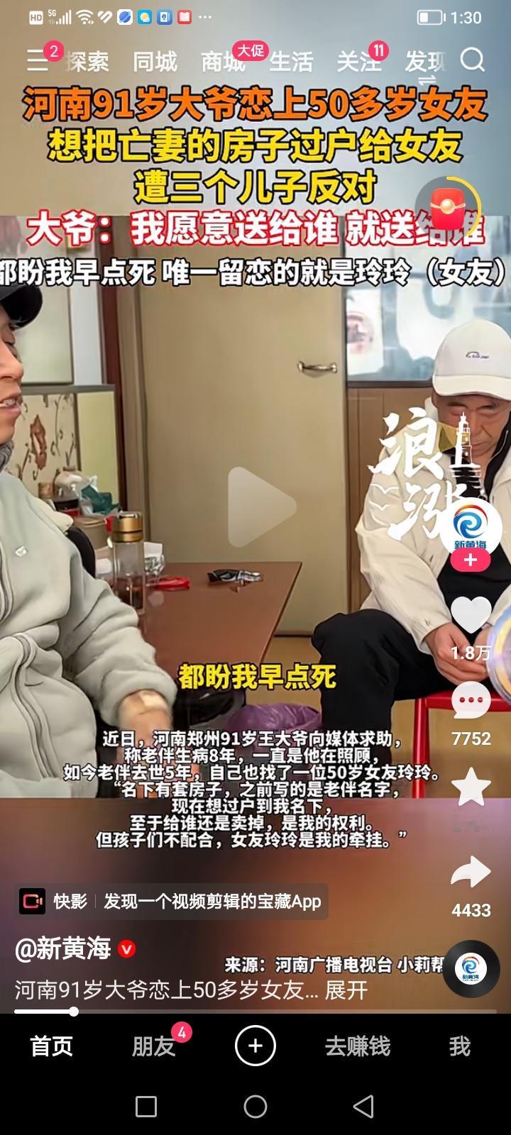 有时候我们嘲笑那些“霸总爱上保洁”的短剧,可事实是有时候短剧都拍的过于保守了。河南91岁大爷爱上了50岁大妈,一定要把房子过户给她,儿子拦都拦不住。大爷还觉得这是三个儿子在使坏。真的是艺术来源于生活,短剧要是敢这么演,肯定得被喷死,但现实就是活生生的例子,就在你眼前。中年霸总短剧 中老年霸总短剧 保洁阿姨争议 大妈爱总裁 保洁总裁