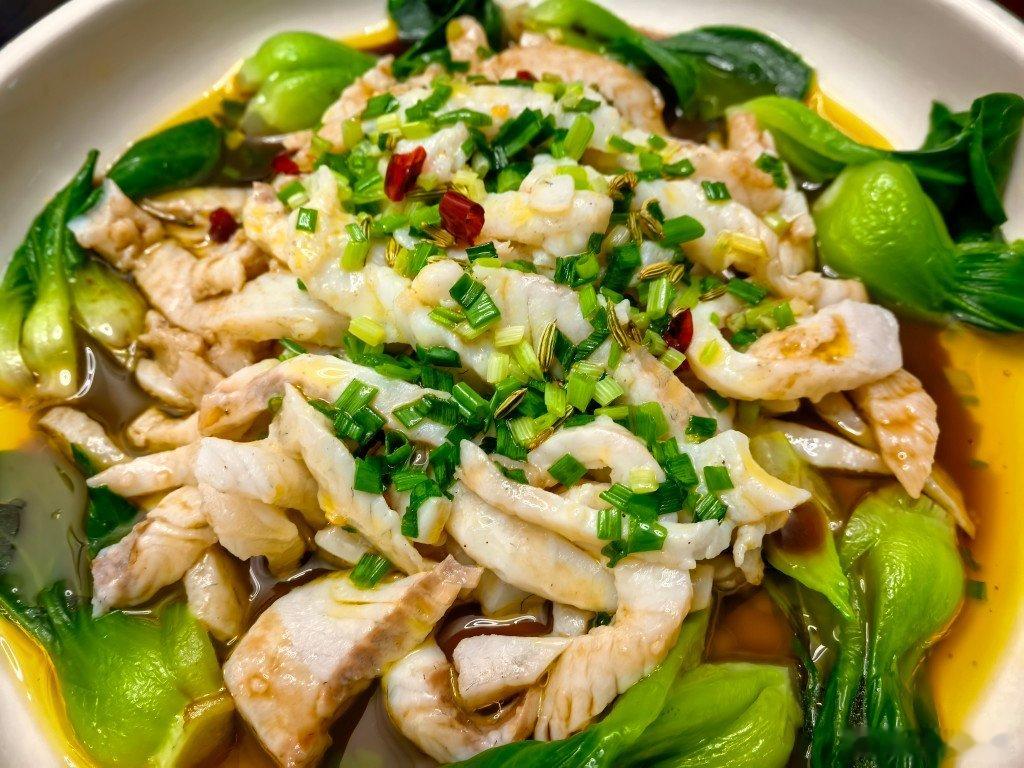 葱油鲈鱼今天突发奇想,把鲈鱼切片剥皮切丝,刀功差,吃个意思