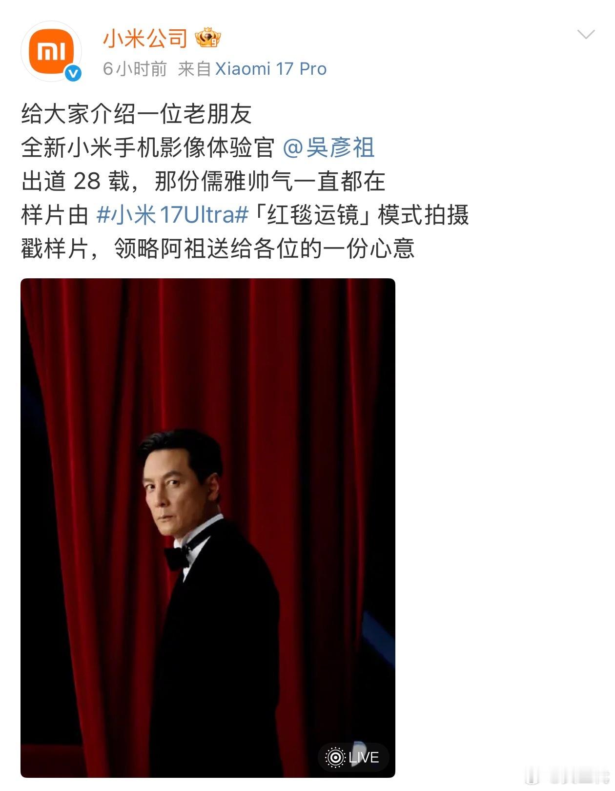 吴彦祖不愧是彦祖吴彦祖帅是一方面,我们小米17 Ultra红毯运镜拍得好也是一方面。效果非常好,吴彦祖重回颜值巅峰。这个功能的实现一般要机械臂+专业摄影机,17 Ultra能拍就已经十分不容易了,现在我们普通人也能走上红毯拍运镜,谁拍谁帅,你是吴彦祖那我是谁?