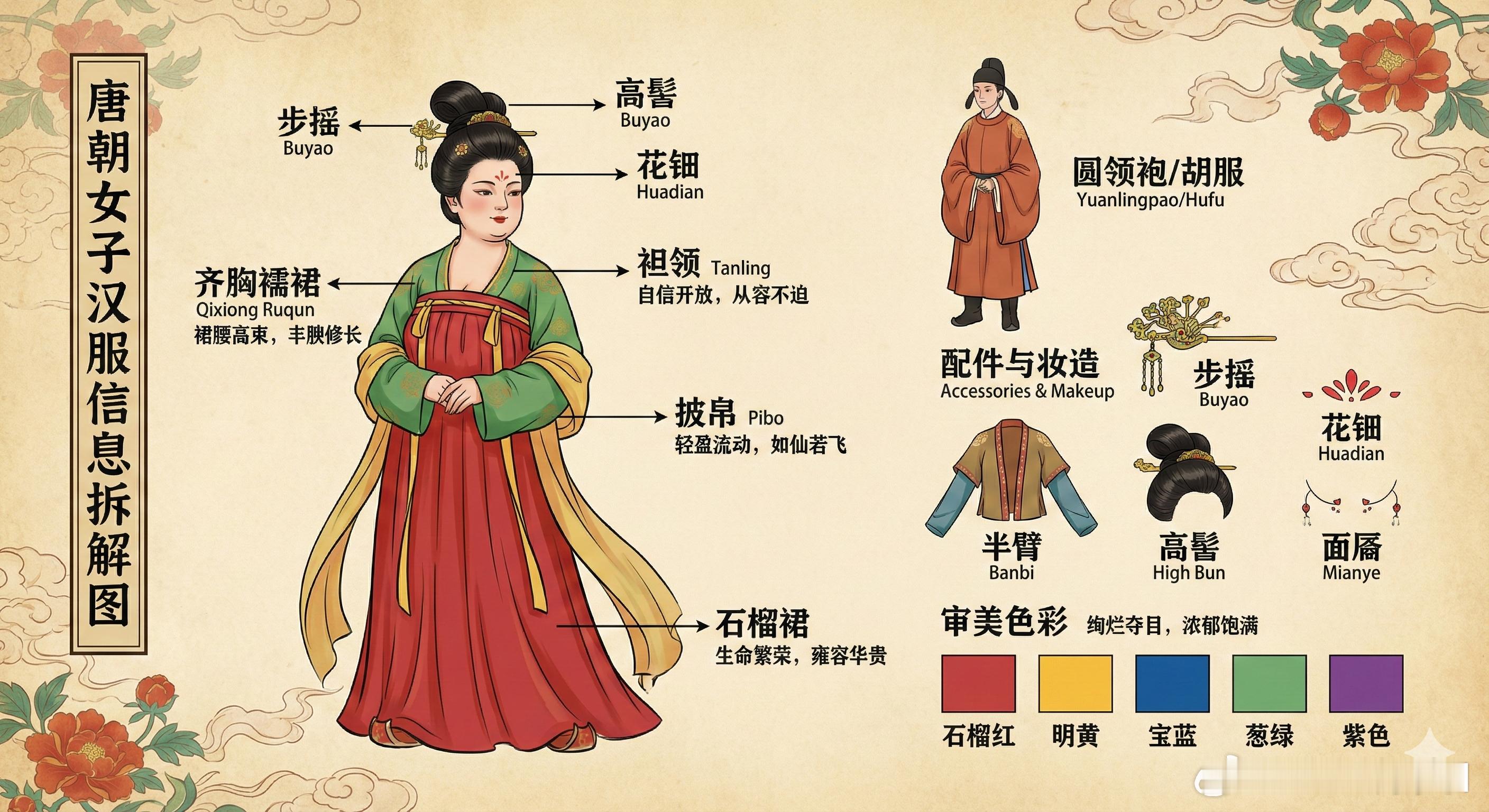 姐妹们!真的建议所有爱美、爱中国传统文化的女生收藏这一篇!从秦汉的端庄到民国的摩登,中国女子的审美从不设限。今天带大家穿越千年,看一看那些“穿在身上的历史”。🏛️ 秦汉:端庄肃穆的“绕襟美学”【形制】 深衣(曲裾/直裾)【风格】庄重、古朴、大气【寓意】 衣襟层层缠绕,象征着“内敛与克制”;交领右衽形成的y字领,寓意“中庸之道”。【女生最爱】 那时的女生讲究“三重衣”,领口层层叠叠,黑色与红色的碰撞是当年的“高定色彩”。🧚♀️ 魏晋:羽化登仙的“飘逸仙气”【形制】 杂裾垂髾服、大袖衫【风格】洒脱、灵动、如梦如幻【寓意】 尖角的“髾”和长长的“纤”随风飞舞,寄托了对**“羽化成仙”和自由境界的极致向往。【女生最爱】 那时最火的是“间色裙”,像彩虹一样的撞色条纹,配上步摇,走起路来整个人都在“飞升”!🌸 盛唐:雍容华贵的“自信顶流”【形制】 齐胸襦裙、袒领衫【风格】 绚丽、大胆、丰腴美【寓意】袒领展现颈部曲线,象征着大唐的“自信与文化包容”;披帛飘拂,灵感源自丝绸之路的异域美感。【女生最爱】女生们痴迷“石榴裙”,额贴花钿,面涂靥妆,就是要那种“万国来朝”的贵气感! 🍵 两宋:清冷克制的“知性高智”【形制】褙子、宋裤、抹胸【风格】 雅致、修长、素净【寓意】 直领对襟象征“中正平和”。相比唐的张扬,宋服更讲究“含蓄与骨感”。【女生最爱】 宋代女生简直是“极简风”鼻祖,月白、豆绿色的褙子,内搭抹胸,走在路上就是行走的文人墨画。 ⛩️ 明代:端庄华丽的“礼教之美”【形制】袄裙、马面裙、立领【风格】 稳重、富丽、仪态万方【寓意】 马面裙的方正褶裥寓意“中正与规矩”;立领子母扣则代表了晚明女性的“精致与严谨”。【女生最爱】 必须是“织金马面裙”!再搭配一副沉甸甸的金银头面,这种“重工华丽感”哪怕在今天也是汉服圈的白月光。💃 民国:中西合璧的“摩登风情”【形制】改良旗袍【风格】 性感、曼妙、前卫【寓意】 引入西式“省道”剪裁,展现女性的“自然曲线”,象征着“女性意识的觉醒”。【女生最爱】 海派旗袍搭上手推波纹烫发,踩上高跟鞋,这就是当年的“东方巴黎”弄潮儿!每一个时代的衣裳,都是那个时代女生对美的渴望。不论是古代的层层包裹,还是民国的优雅曲线,美的核心始终是我们的**文化自信**。你最心动哪一个朝代的“衣橱”?在评论区告诉我吧!🐀𡼨汉服 中国美学 汉服演变史