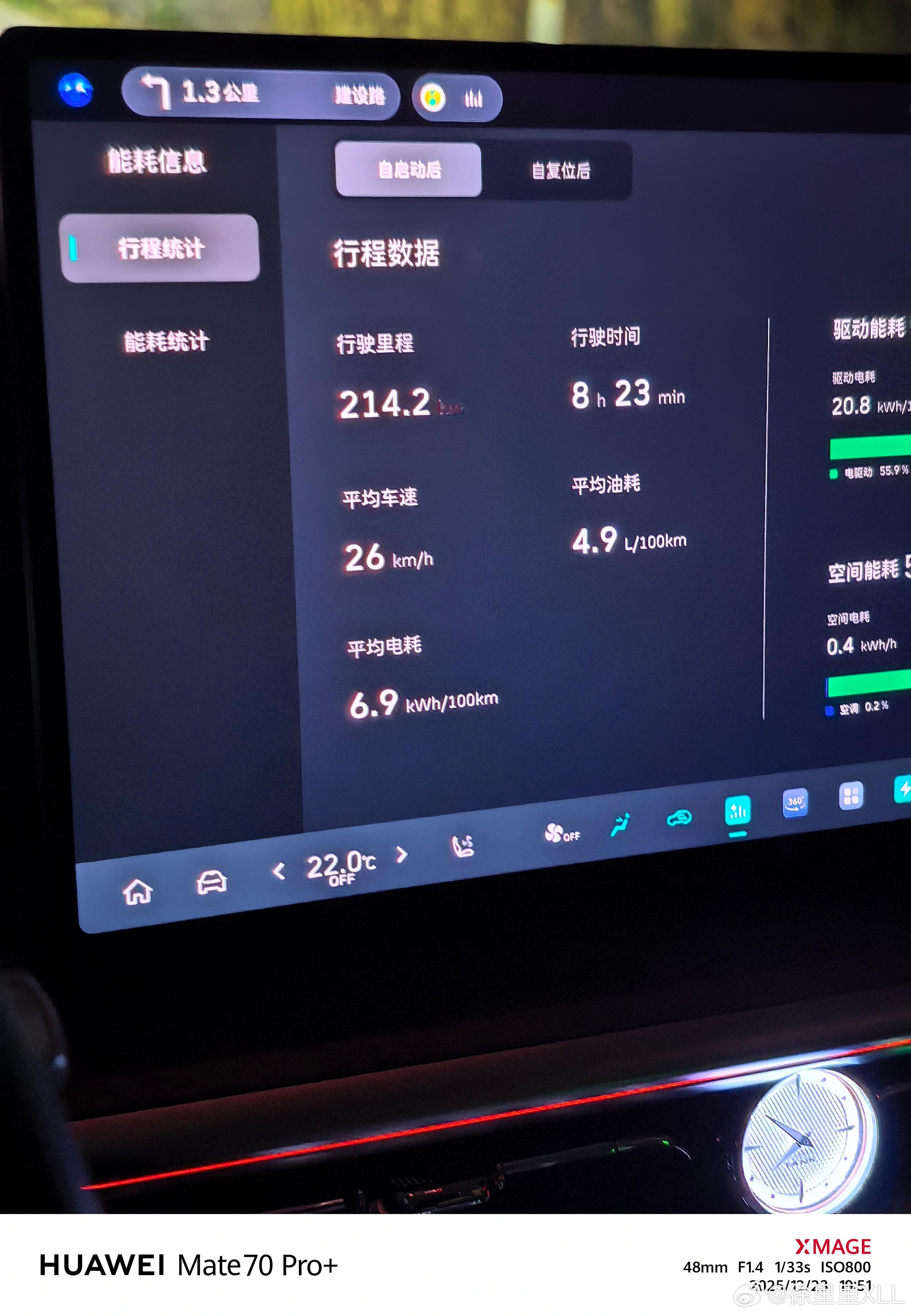 遇到个大哥,摩托车灯坏了。跟在后面给他照了一路。500Z这车的能耗很迷。跋山涉水一天了,最后一看。4.9个油+6.9度电。怎么感觉跟市区差不多?