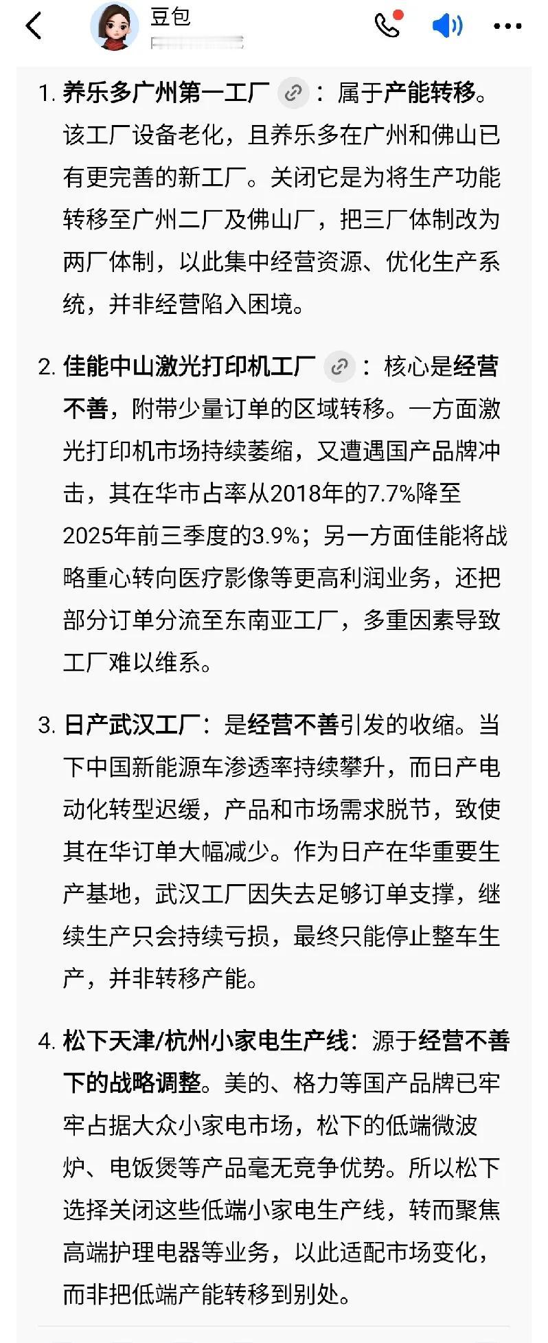 按照一些人的逻辑,美国新开了一家蜜雪冰城,而中国有一家蜜雪冰城倒闭了,这就是蜜雪冰城在向美国转移产能,是在撤资。 这四个工厂,除了养乐多是在转移产能,还是转移到中国其他工厂,其他都是经营不善导致的关厂。