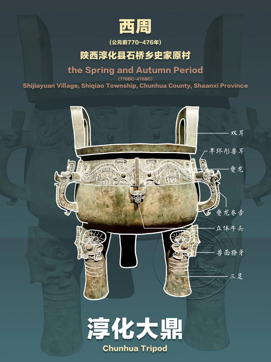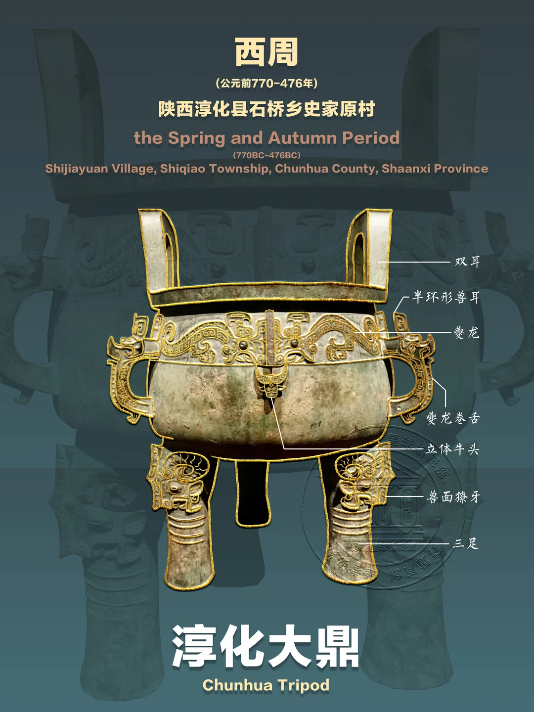 淳化大鼎以磅礴之躯,承载着西周礼制的威严,凝聚着青铜工艺的智慧。它沉默三千年,却仍在诉说“鼎盛中华”的传奇。