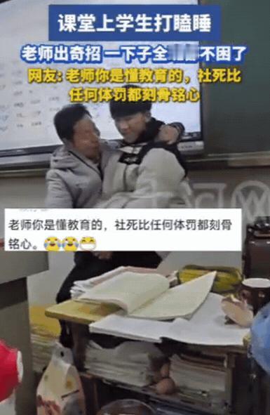 笑不活!湖北孝感,老师正在上课,突然发现一学生打瞌睡,不料,老师没有责骂,也没有生气,而是贴心的走过去,将学生拉起来,抱到自己怀里,让学生继续睡!学生当场社死,这一下子全班都不困了,网友:老师你是懂教育的,社死比任何体罚都刻骨铭心! 事发当天的课堂上,老师正带着学生们梳理知识点,课堂节奏紧凑又有序。时值上午最后一节课,临近饭点,部分学生难免出现了困倦情绪, 那名学生更是没能扛住睡意,不知不觉就趴在桌子上睡了过去。起初老师并没有立刻察觉,直到讲解到重点内容,准备提问互动时,才发现了这名“走神”的学生。 周围的同学也注意到了老师的目光,纷纷扭头看向熟睡的同学,原本安静的课堂泛起了一丝细微的骚动,有同学忍不住抿嘴偷笑,也有同学替熟睡的伙伴捏了把汗,担心他会被老师严厉批评。 毕竟在大家的固有印象里,上课打瞌睡可是课堂大忌,轻则被点名提醒,重则可能被当众训斥,甚至课后还要被单独谈话。 可接下来发生的事情,完全超出了所有人的预期。老师看到学生熟睡的模样,脸上没有丝毫怒意,反而露出了一丝心疼。 他轻轻放下手中的课本,放慢脚步一步步走到后排,生怕脚步声太大惊醒了学生。走到课桌旁后,老师没有直接拍打或叫醒学生,而是弯下腰,用极其轻柔的动作,慢慢将趴在桌子上的学生扶了起来。 学生睡得正沉,被轻轻扶起时还迷迷糊糊的,眼睛都没完全睁开,身体还下意识地往桌子方向靠。就在大家以为老师要开口提醒时,老师直接张开双臂,将这名半梦半醒的学生抱进了自己怀里, 被老师抱在怀里的瞬间,原本还迷迷糊糊的学生瞬间清醒了大半,整个人僵在原地,脸颊以肉眼可见的速度红了起来,从脸颊一直红到了耳朵根。 他双手僵硬地垂在身体两侧,眼神慌乱地四处躲闪,不敢看老师,也不敢看周围的同学,恨不得找个地缝钻进去,妥妥的“社死现场”。 课堂上的其他同学看到这一幕,再也忍不住憋笑,发出了此起彼伏的轻笑声,原本沉闷困倦的氛围瞬间被打破。 刚才还有些昏昏欲睡的同学,此刻全都精神百倍,眼睛瞪得圆圆的,紧紧盯着讲台方向,再也没有了一丝睡意。就连原本趴在桌子上强撑的同学,也立马坐直了身体,专注地看向老师,生怕自己也成为“关注焦点”。 老师抱着学生待了几十秒,感受到怀里的学生身体不再僵硬,才轻轻将他放下来,拍了拍他的肩膀示意他坐好,然后转身回到讲台上,若无其事地继续授课。 被放下后的学生,坐得笔直笔直的,腰杆挺得比谁都直,眼神专注地盯着黑板,全程再也没有一丝困意,甚至还主动举手回答了老师提出的问题,状态完全变了个样。 这一幕被教室后排的同学用手机悄悄记录了下来,视频传到网上后,很快就引发了网友们的热烈讨论。大家纷纷被老师温柔又有趣的教育方式圈粉,有网友留言说:“这老师也太懂孩子了,比起打骂,这种方式更能让学生记住教训。” 还有网友调侃:“这波社死估计能让学生记一辈子,以后上课再也不敢打瞌睡了。”更有网友表示,这样的教育方式既保护了学生的自尊心,又达到了提醒的目的,值得点赞。 对此,你们有什么看法,欢迎评论留言~