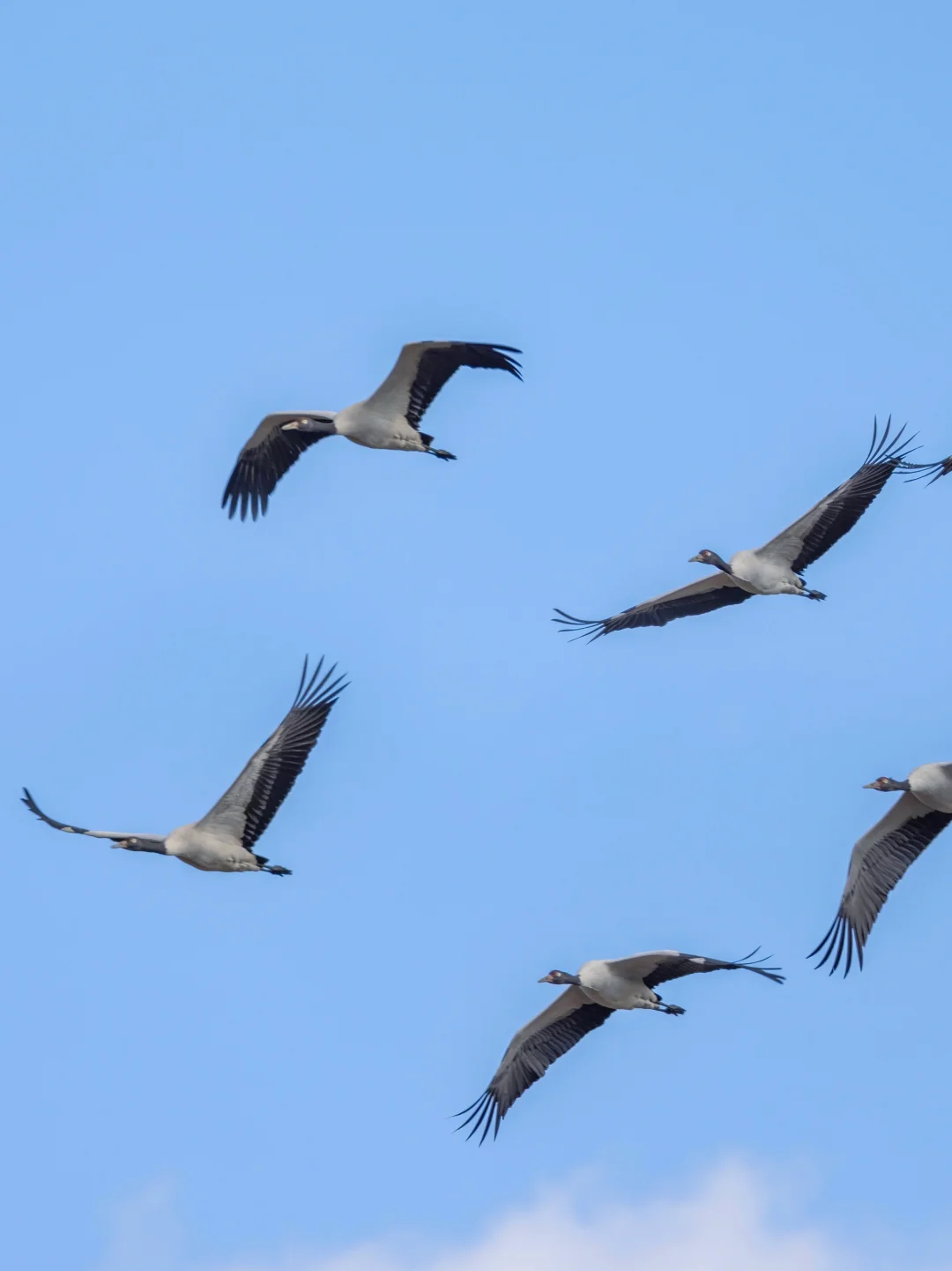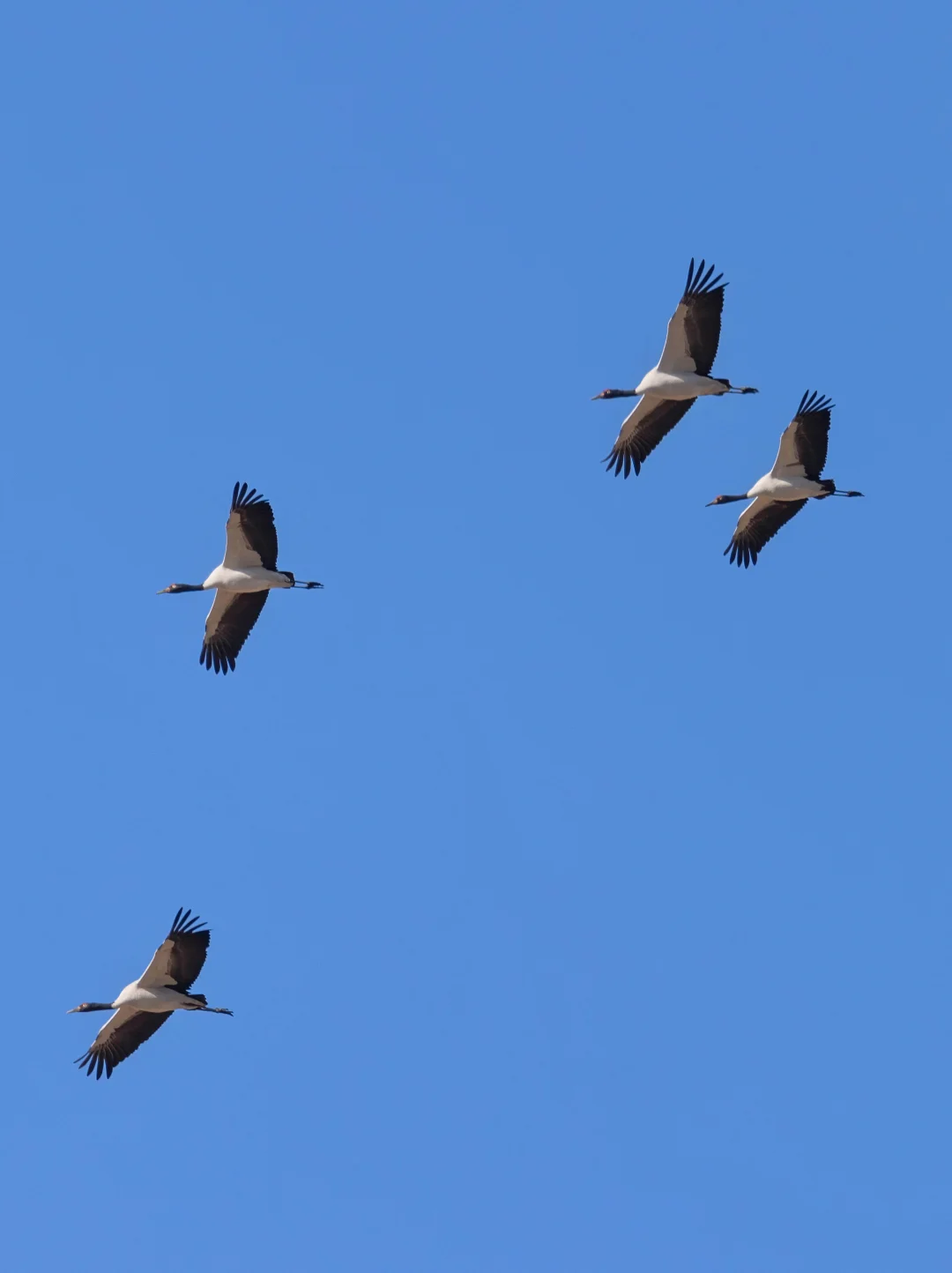 原创拍摄于2025.02 黑颈鹤,Black-necked Crane,鹤形目鹤科鹤属。黑颈鹤是鹤科鹤属中唯一的高原鹤类,被誉为唯一生活在天谕上的鹤。 黑颈鹤顾名思义,头部和上颈部2/3是黑色的,眼后和眼下方有一小块白色斑。 黑颈鹤广泛分布于我国西藏高原,夏季栖息于高海拔湿地,冬季迁至较低海拔地区,比如我这次在香格里拉纳帕海见到的超多黑颈鹤种群越冬。由于他们生活在高原上,它们是全球的鹤类里面最后一种被人类发现的。