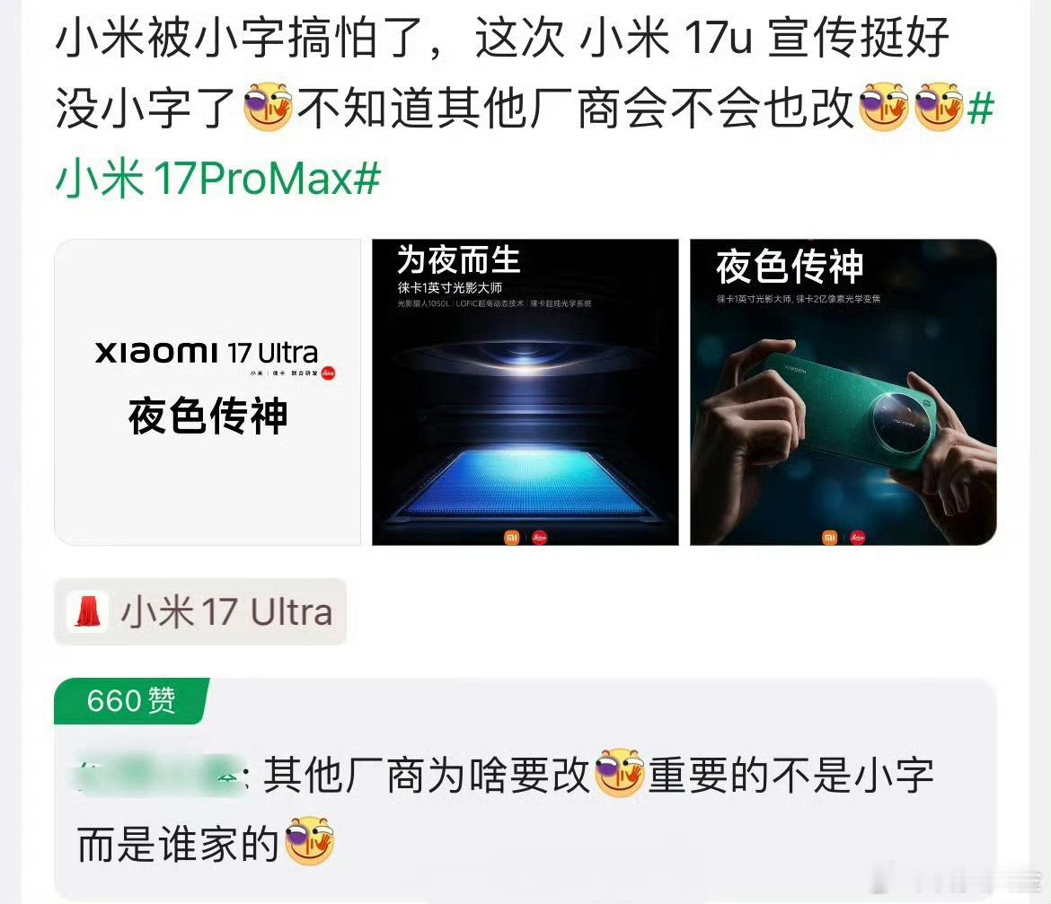 楼下说的完全没毛病,重要的不是小字,而要看是谁家的小字,比如大家都有小字,但唯独小米被沸腾起来了,各种大浪淘沙,当然还包括断章取义一类的…