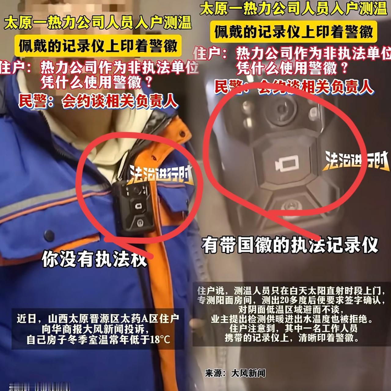 这下山西太原可闹出大动静了! 一男子因家里温度低于18度向热力公司投诉, 结果 工作人员的操作让人直呼离谱。 中午上门测温不说,还专挑阳面房子,这能测出真实温度吗?更让人惊讶的是,工作人员佩戴的记录仪上竟印着警徽,热力公司又不是执法部门,这合适吗? 这可不是小事,测温不规范,设备使用还存疑,让民众怎么信任供暖服务?供暖是民生大事,温度达标只是基础,测温过程也得公开透明、规范合理。 相关部门得重视起来,好好查查这警徽记录仪到底咋回事,给民众一个清楚解释。 毕竟,只有把小事办好,解开民众疑惑,才能让大家屋里暖,心里更暖。 大家身边有没有遇到过类似供暖测温不合理的现象呢?快来评论区聊聊!