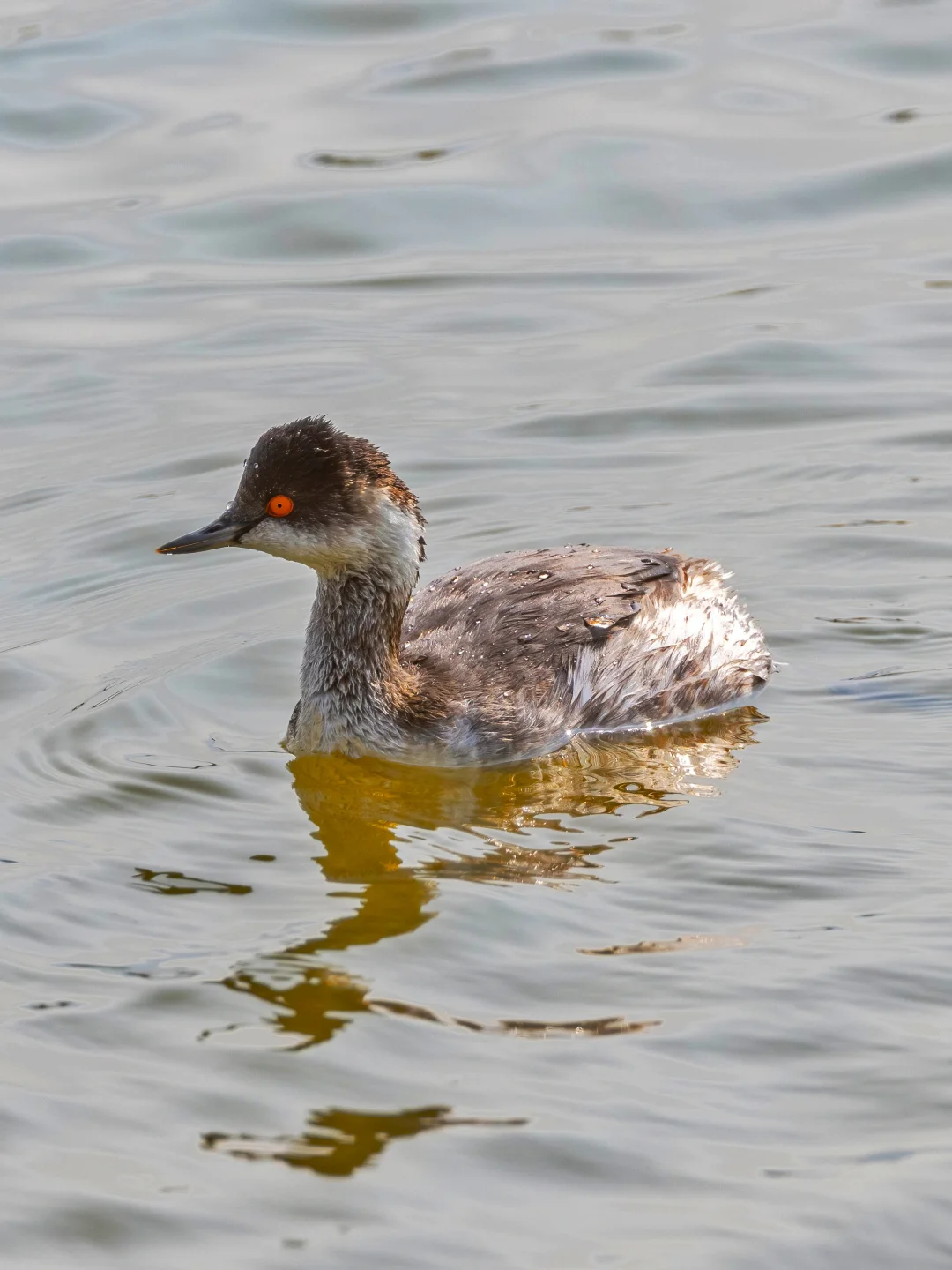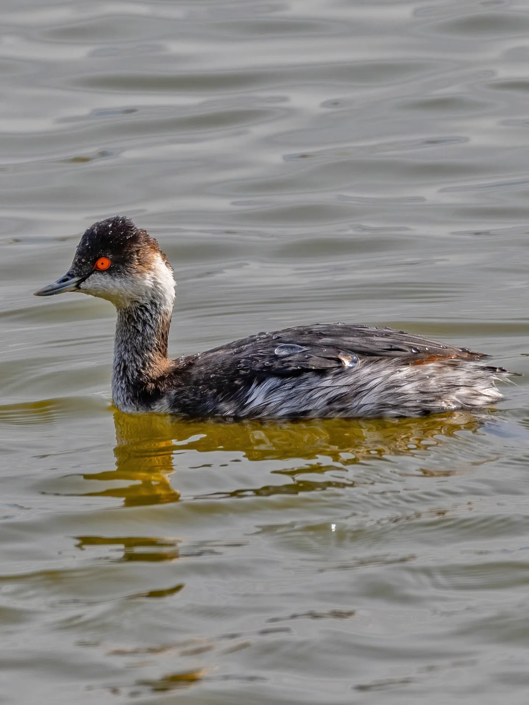 原创拍摄于2025.01 黑颈鸊鷉,䴙䴘目䴙䴘科䴙䴘属。这只是冬羽,没有繁殖羽那么耀眼,不过和角鸊鷉的冬羽比较像。黑颈鸊鷉的嘴全深色,深色的顶冠延伸到眼下。国保二级。 黑颈鸊鷉冬季偶尔能在我国南部见到过冬的个体,在长江流域和珠三角都见过了。这次这只在香港过冬的黑颈鸊鷉每天都到同一个鱼塘觅食,真是乖巧。